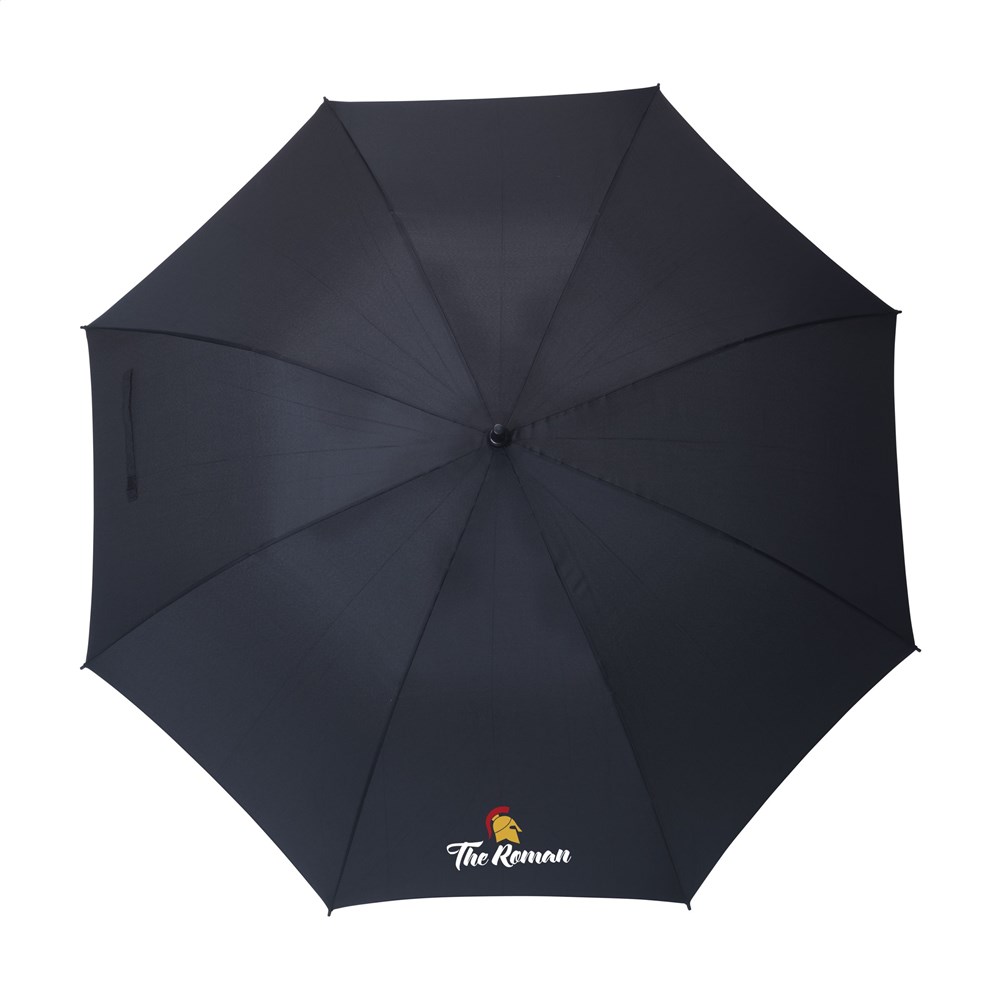 Paraplu met pongee 190T nylon bespanning en een extra grote schermdoorsnede van maar liefst 132 cm. Waterafstotend. Met automatische telescoopvering, glasvezel frame en steel, soft foam handgreep en klittenbandsluiting.