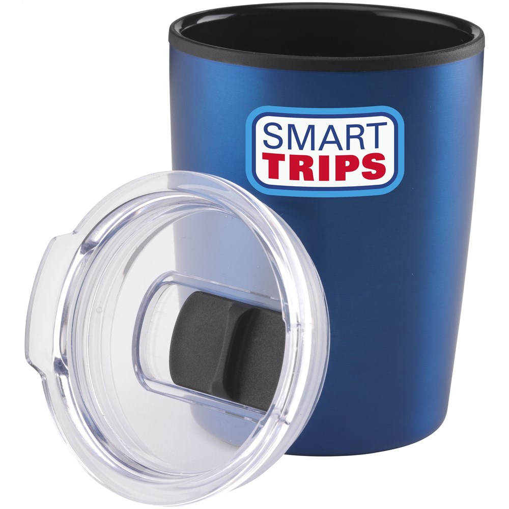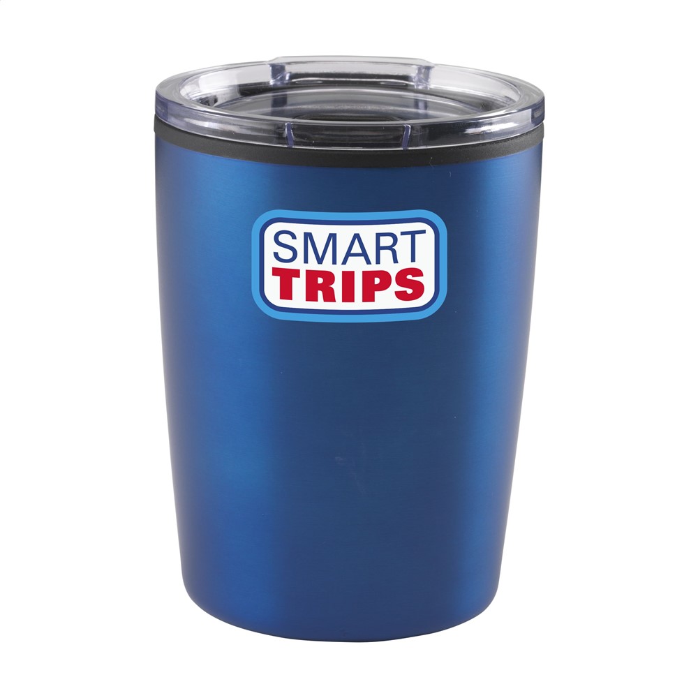 Dubbelwandige RVS espresso thermosbeker met kunststof binnenwand en transparante push-on deksel met afsluitbare drinkopening. Door zijn vorm en beperkte hoogte past deze perfect onder je koffieapparaat en in je auto. Slipvrije onderzijde. Inhoud 170 ml. Per stuk in doos.