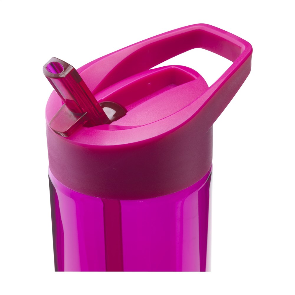 Opvallend slanke waterfles van helder, hoogwaardig Eastman Tritan™; BPA-vrij, milieubewust, duurzaam en herbruikbaar. Met PP kunststof schroefdop voorzien van een inklapbaar mondstukje en afsluitbaar rietje. Lekvrij. Door de slanke vormgeving ligt deze fles bijzonder prettig in de hand. Inhoud 600 ml.
