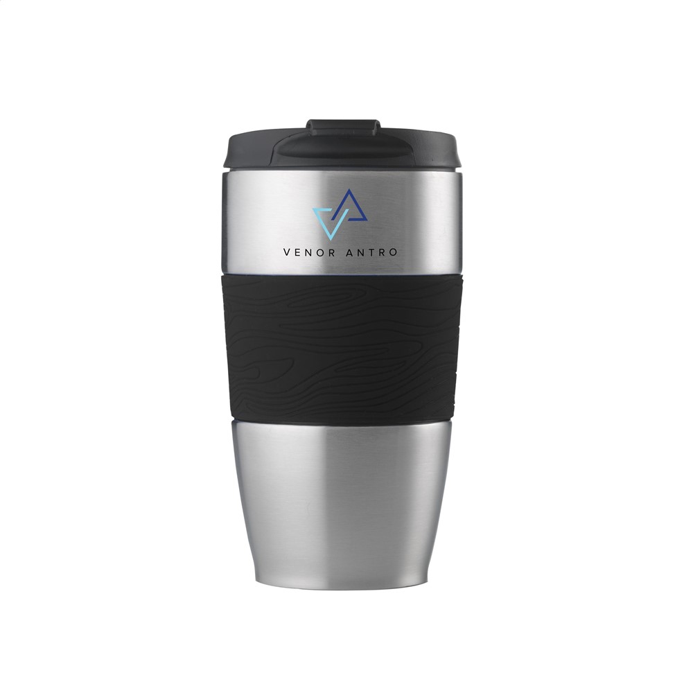 Dubbelwandige, lekvrije RVS thermosbeker met schroefdeksel, klikopening -kan eenmaal geopend worden vastgeklikt en dat maakt drinken gemakkelijker-, rubberen grip met opvallend dessin en slipvaste onderzijde. Houdt je drank lang op temperatuur. Inhoud 415 ml. Per stuk in doos.