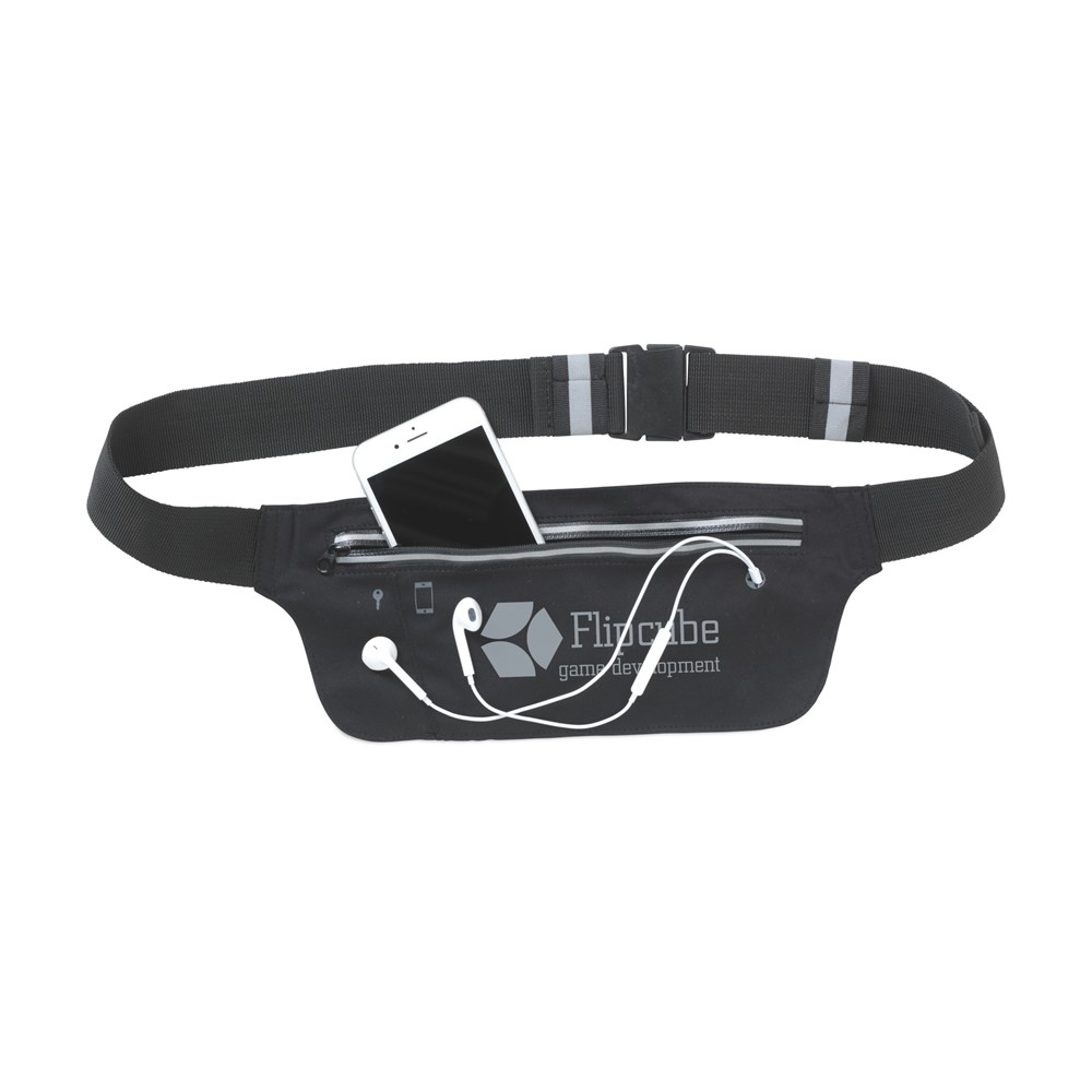 Waterdichte heuptas van comfortabel, elastisch materiaal. Speciaal voor het veilig opbergen van persoonlijke spullen tijdens sportieve activiteiten, vakanties of festivals. Met waterdichte ritssluiting, opbergvak voor mobiele telefoon met opening voor een oortelefoon en een separaat vakje voor sleutels. De verstelbare riem heeft een kunststof kliksluiting en reflecterende riemlussen. Omtrek maximaal 104 cm.