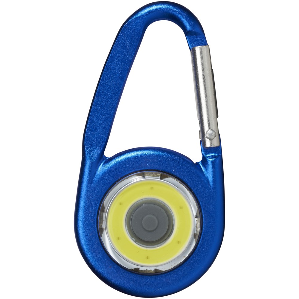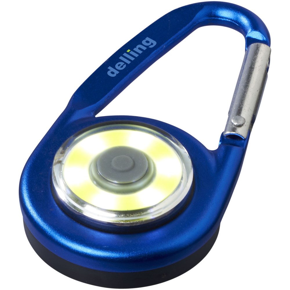 Karabijnhaak met COB LED licht. Aan / uit-drukknop voor hard, zacht en knipperend licht. Platte...meer