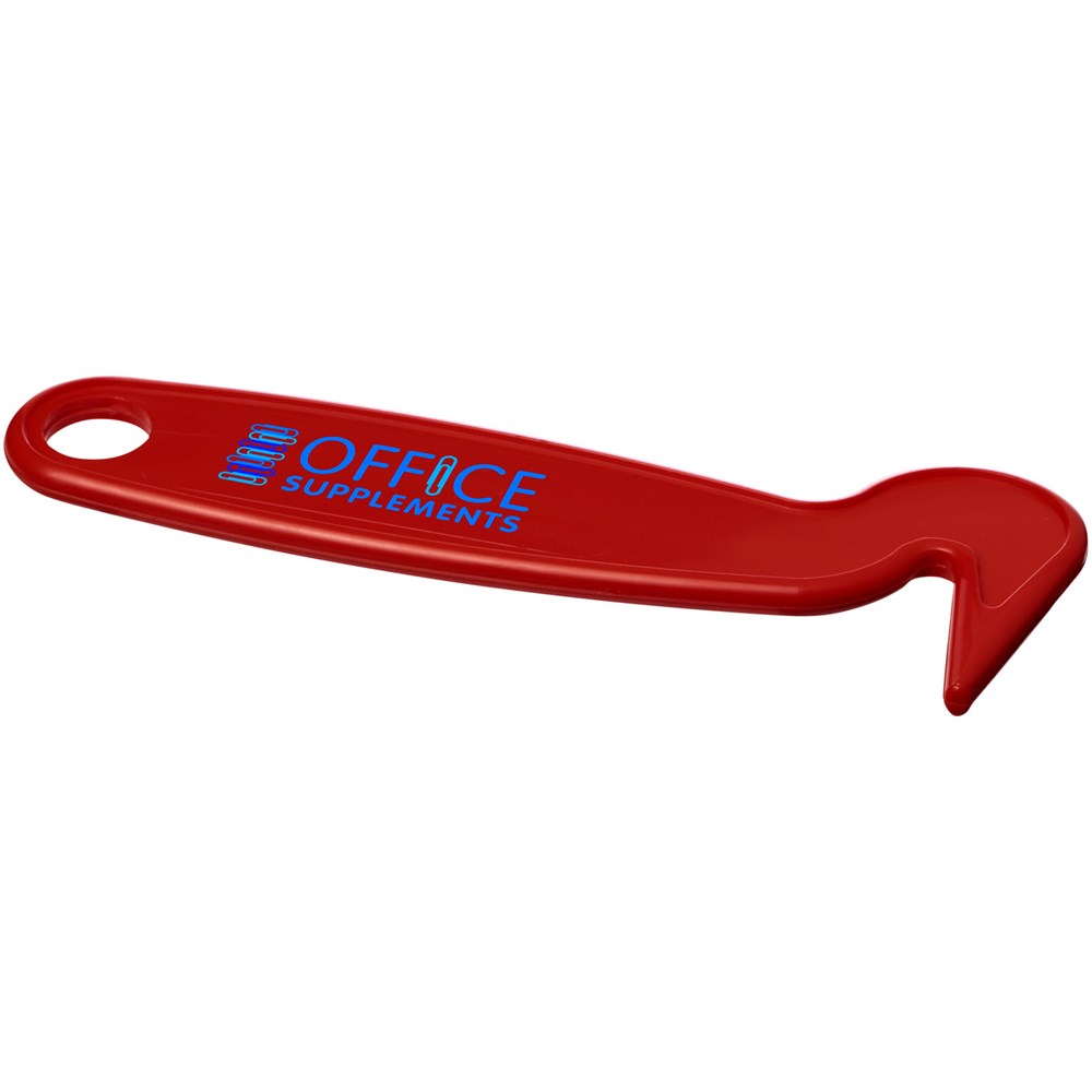 Een hoefkrabber in diverse standaard kleuren met optioneel een gegoten inzetstuk met reliëf of bedrukt met jouw logo.