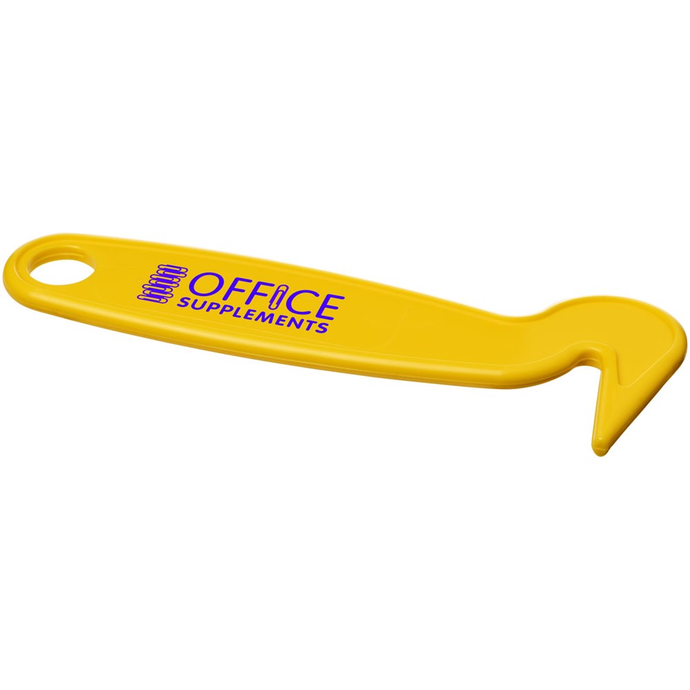 Een hoefkrabber in diverse standaard kleuren met optioneel een gegoten inzetstuk met reliëf of bedrukt met jouw logo.