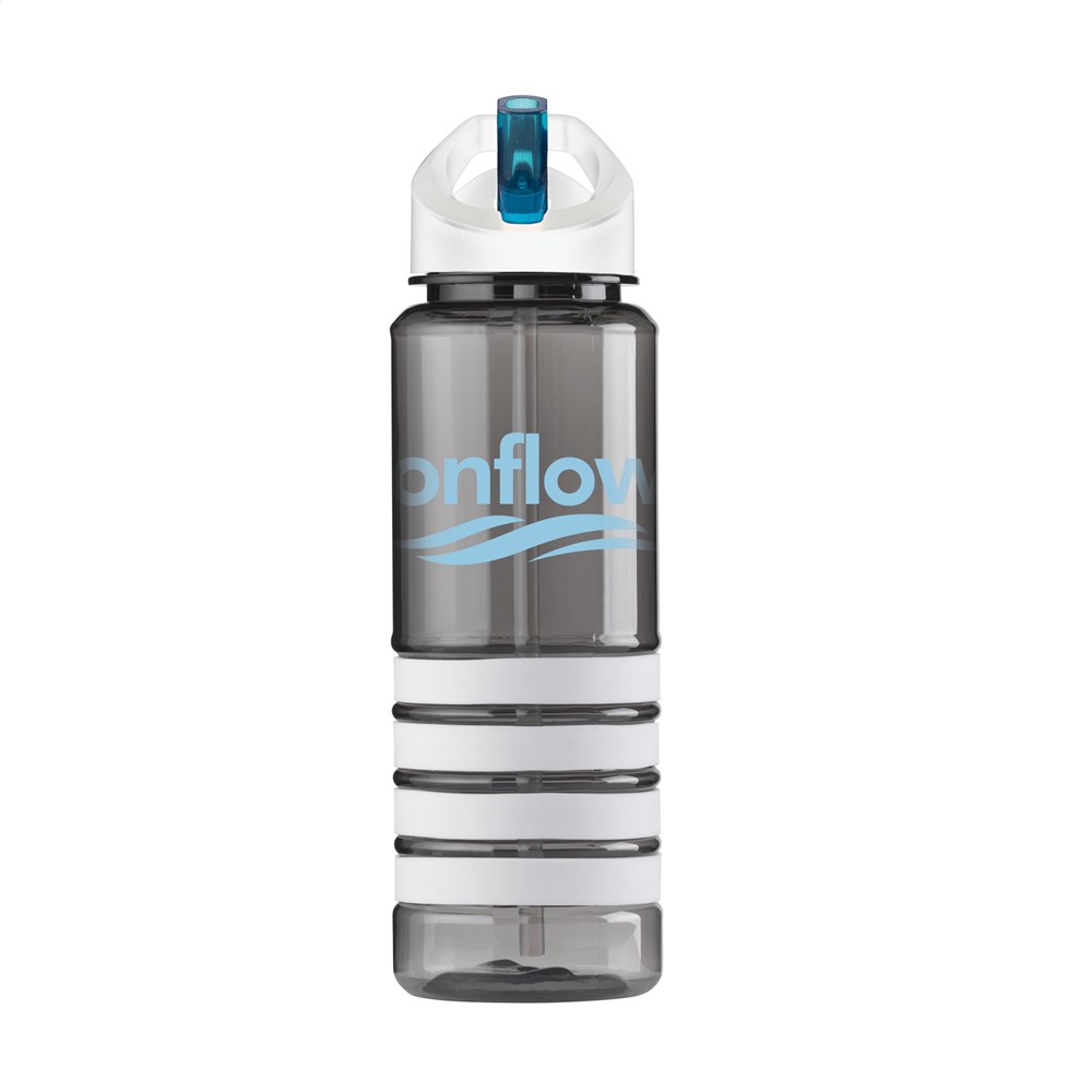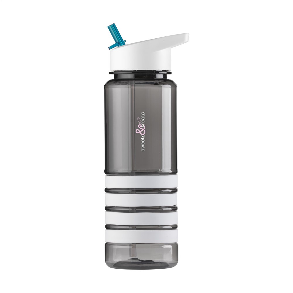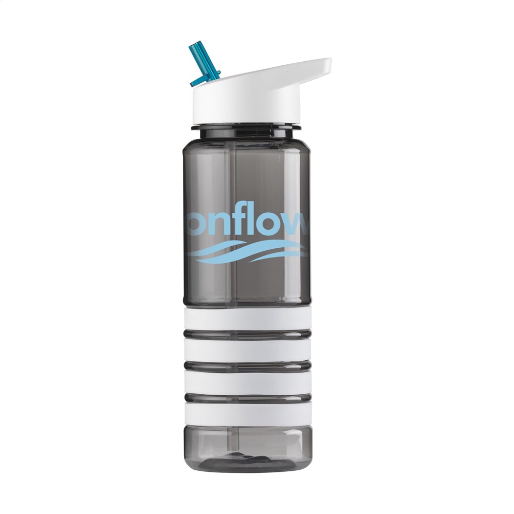 Herbruikbare, trendy waterfles met inklapbaar mondstukje en afsluitbaar rietje. Van helder BPA-vrij Eastman Tritan™ kunststof. De vier afneembare, siliconen ringen vallen direct op en geven deze fles een speels kleuraccent. Inhoud 750 ml. Verkrijgbaar in verschillende kleurcombinaties.