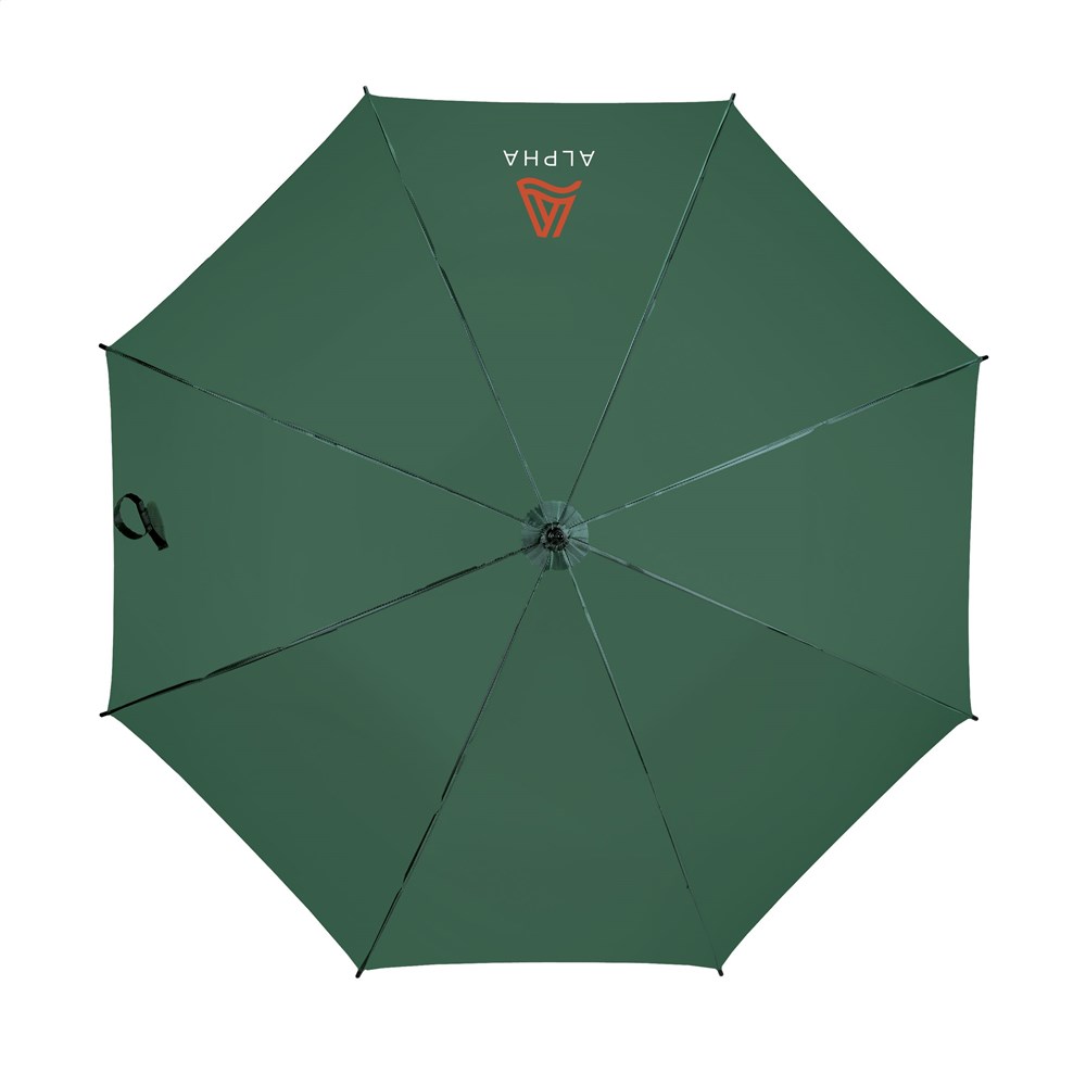 Paraplu met automatische telescoopvering. 190T polyester bespanning, glasvezel frame, metalen steel, klittenbandsluiting, gebogen klassieke handgreep die prettig aanvoelt door de luxe, rubberen coating.
