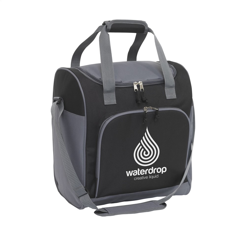 Stevige koeltas van 600D polyester. Met zeer ruim koelvak en ritsvak, verstelbare schouderriem met gewatteerd schouderstuk en 2 handgrepen. Verrassend veel opbergruimte: geschikt voor 6 flessen tot 2 liter.