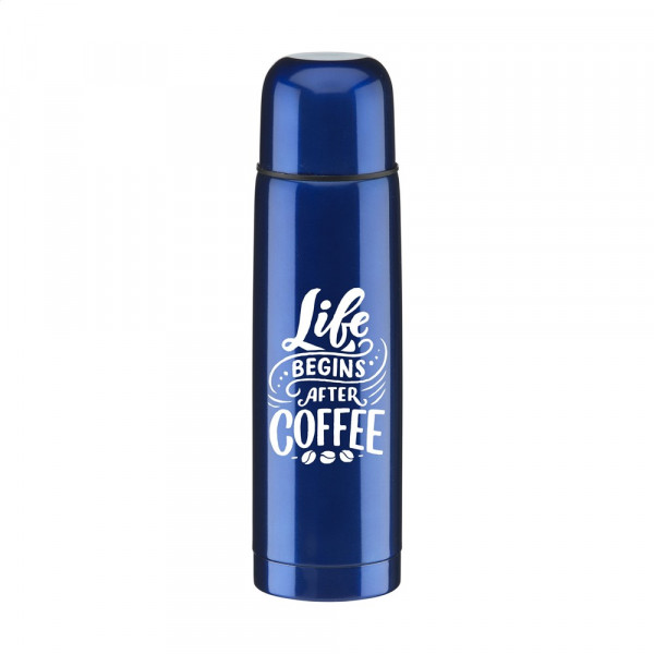 Vacuüm geïsoleerde, RVS thermosfles met schroefdop/drinkbeker en handig schenksysteem met druksluiting. Inhoud 500 ml. Per stuk in doos.