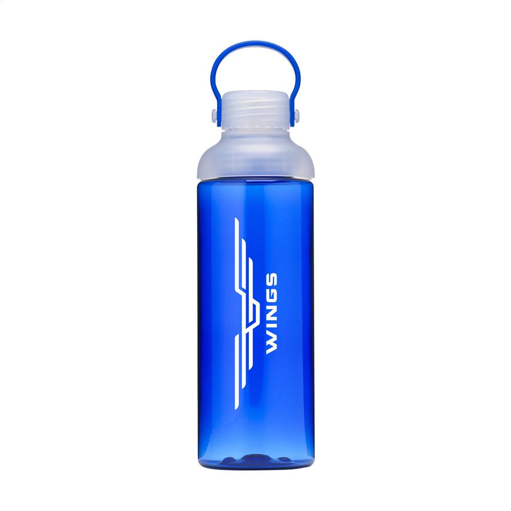 Stijlvolle waterfles van helder, hoogwaardig Eastman Tritan™; BPA-vrij, milieubewust, duurzaam en herbruikbaar. De fles heeft een royale opening en is dus gemakkelijk te reinigen. Met PP schroefdeksel voorzien van een kleine, afsluitbare drinkopening. Met handige draaglus. Lekvrij. Inhoud 600 ml.