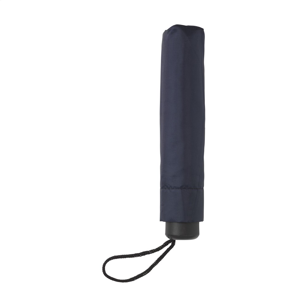 Compacte, inklapbare paraplu met 190 T polyester bespanning, metalen frame, handgreep met lus en opberghoes. Lengte ingeklapt: 17 cm. Afm Ø 92 x 55 cm.