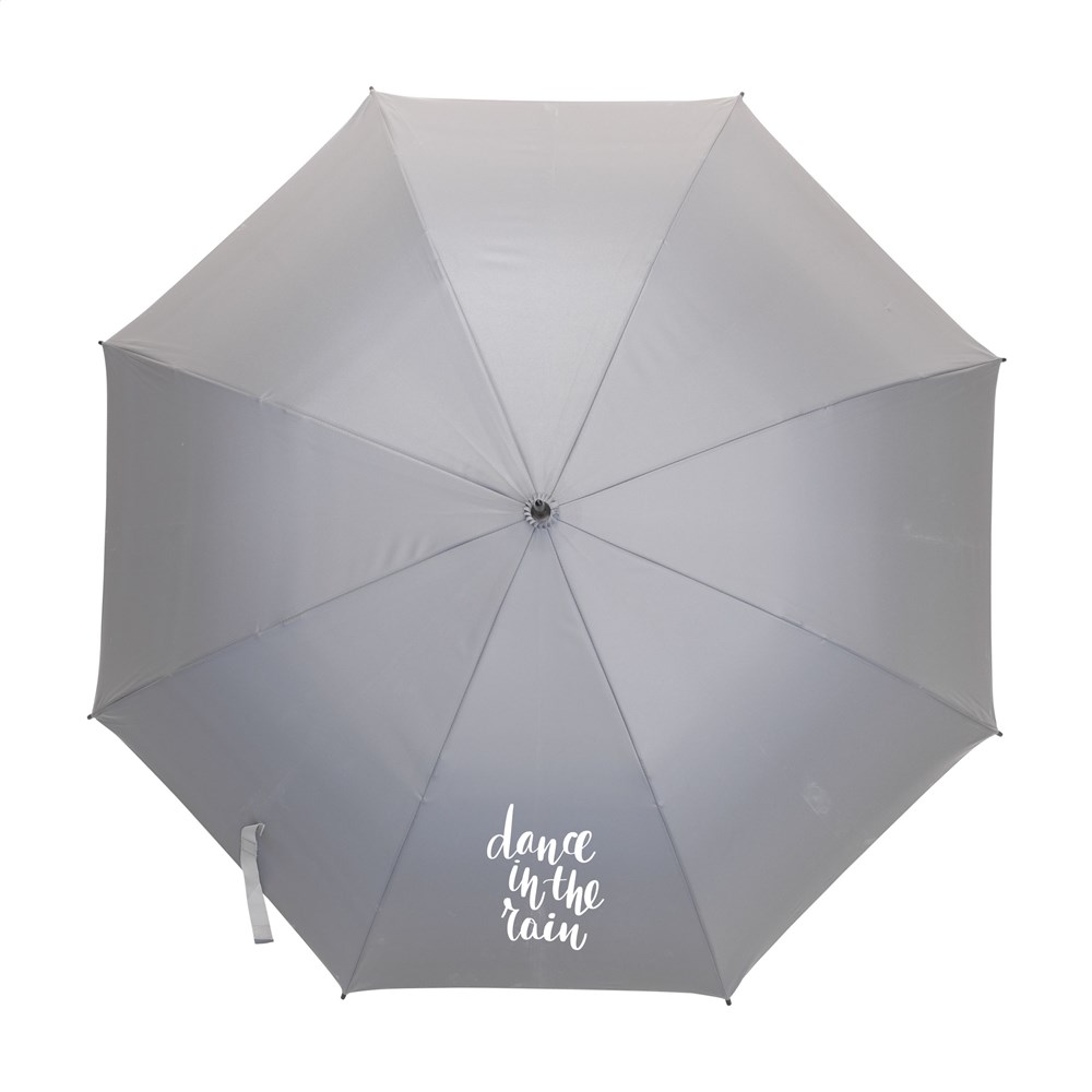 Opvallend zichtbare paraplu van 190T fluorescerend 'high-visibility' polyester. Met automatische telescoopvering, glasvezel frame, metalen steel, soft grip en klittenbandsluiting.