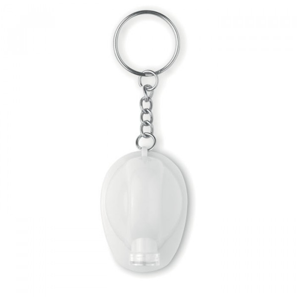 Grappige sleutelhanger in de vorm van een bouwvakkershelm met zaklampje. Inclusief 3 AG10 batterij.