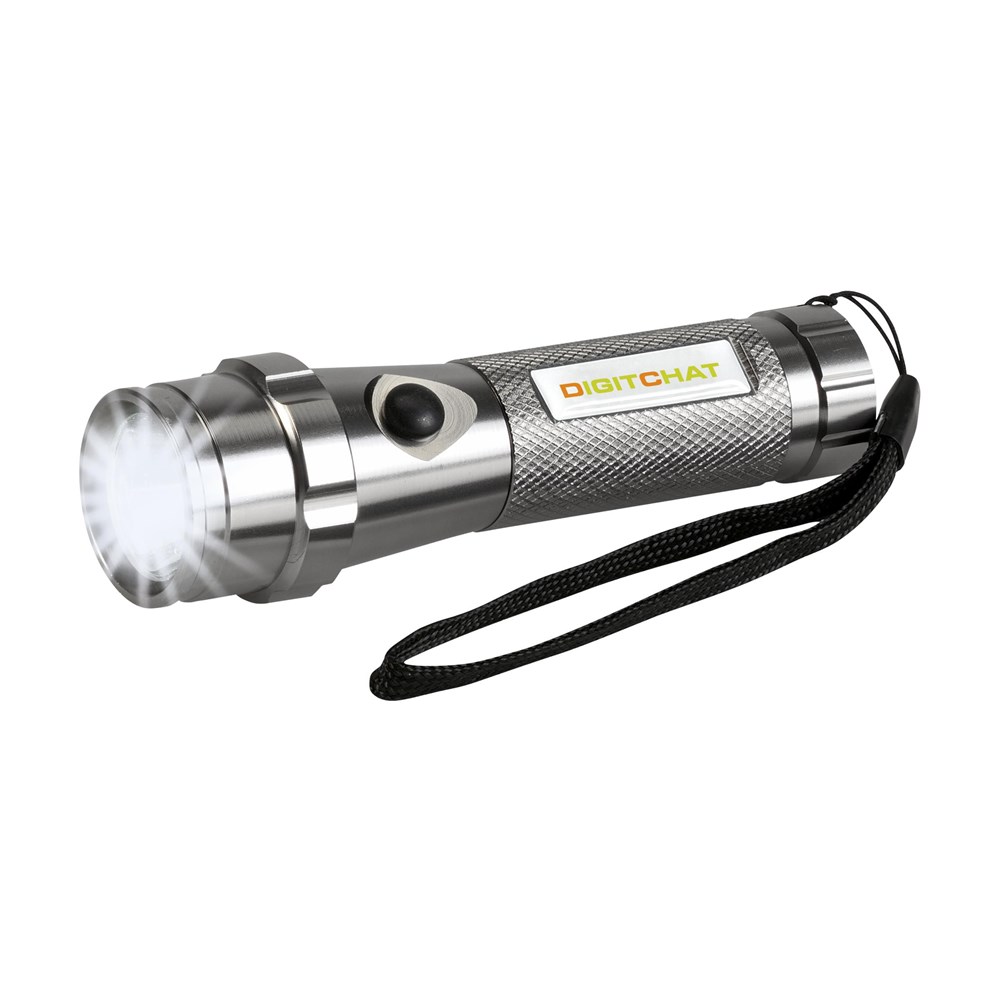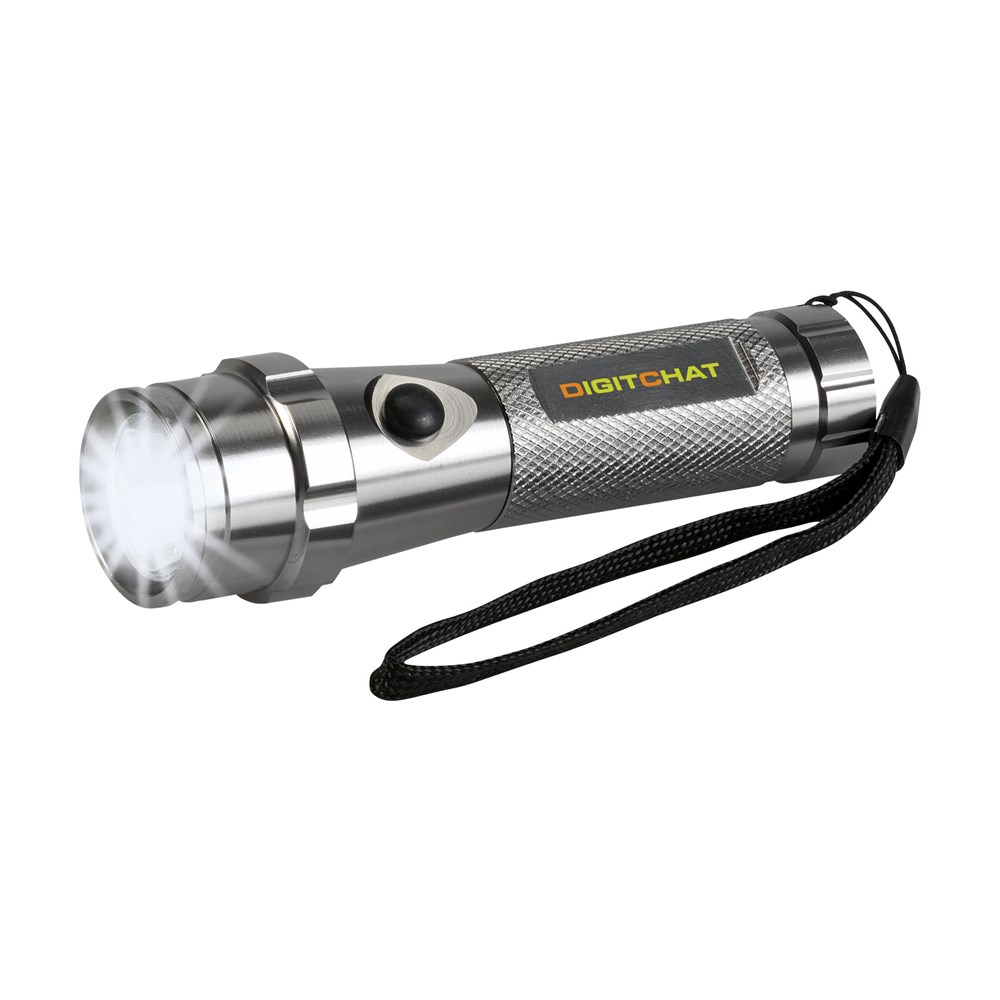 Aluminium zaklamp met felwitte lichtbundel dankzij de supersterke 1 Watt LED-lamp. Afm. Ø 4 x 14 cm. Met afneembare polslus en nylon etui. Incl. batterijen. Per stuk in doos.