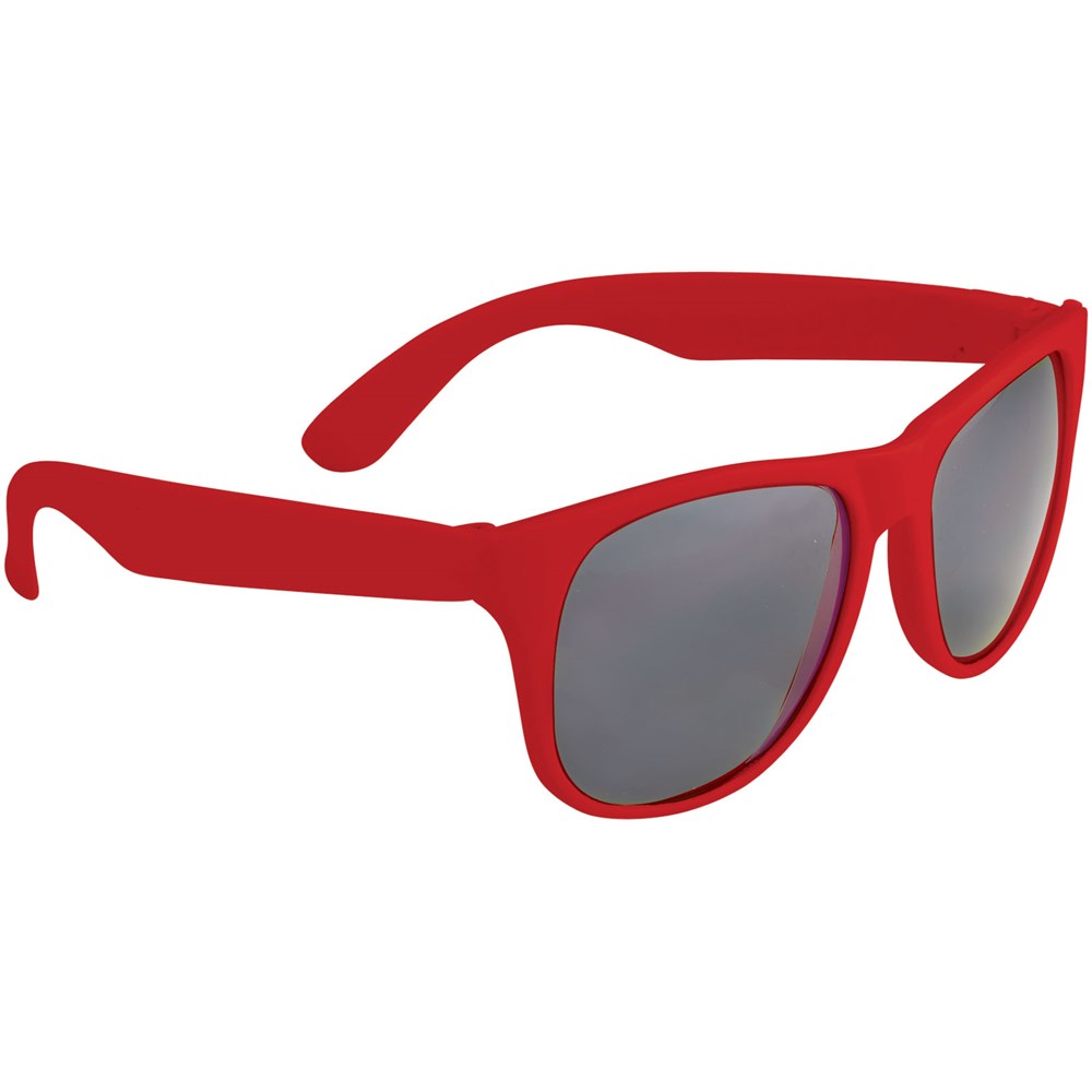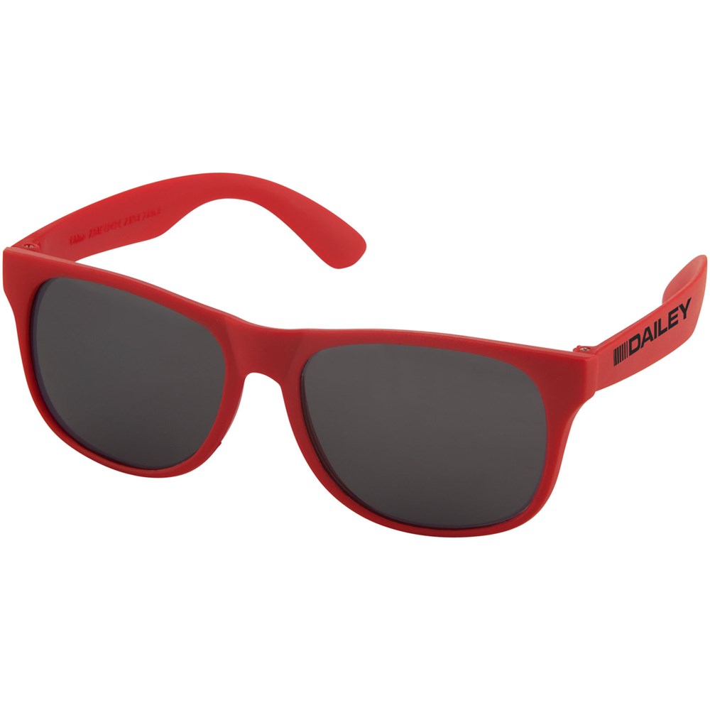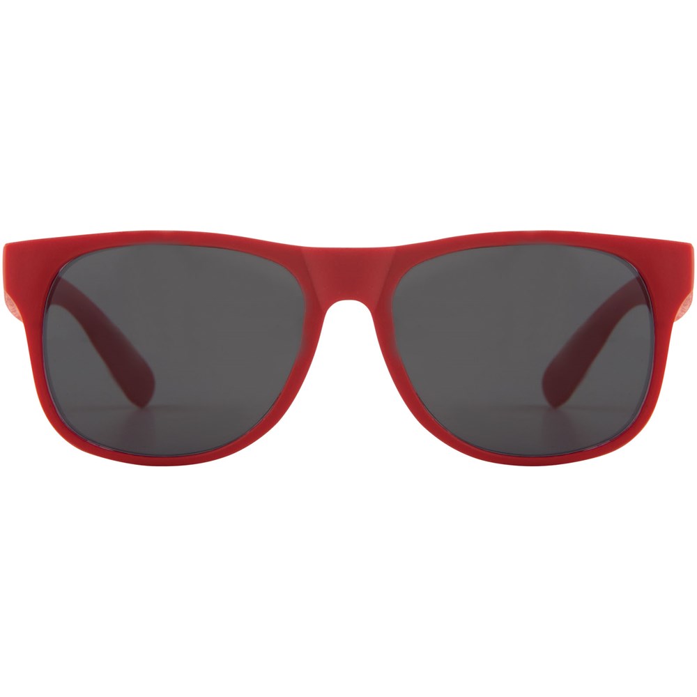 Retro design single color zonnebril met categorie 3 zwarte lenzen. Voldoet aan EN ISO 12312-1 en UV400.