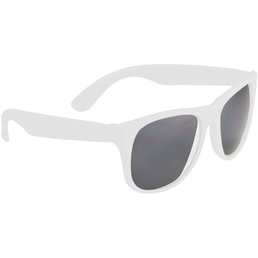 Retro design single color zonnebril met categorie 3 zwarte lenzen. Voldoet aan EN ISO 12312-1 en UV400.