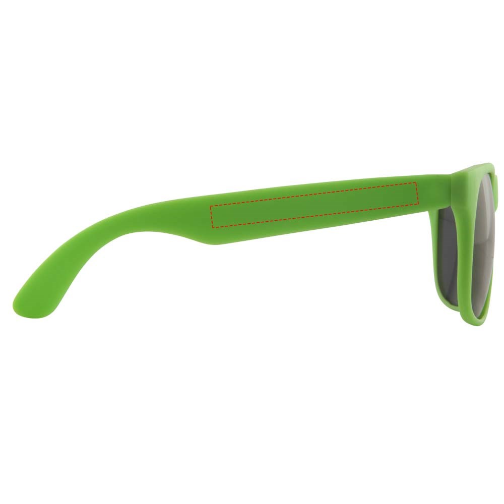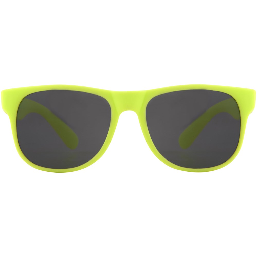 Retro design single color zonnebril met categorie 3 zwarte lenzen. Voldoet aan EN ISO 12312-1 en UV400.