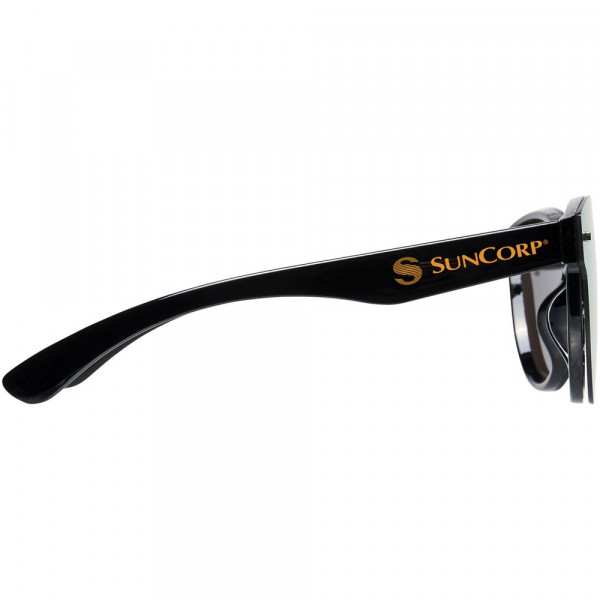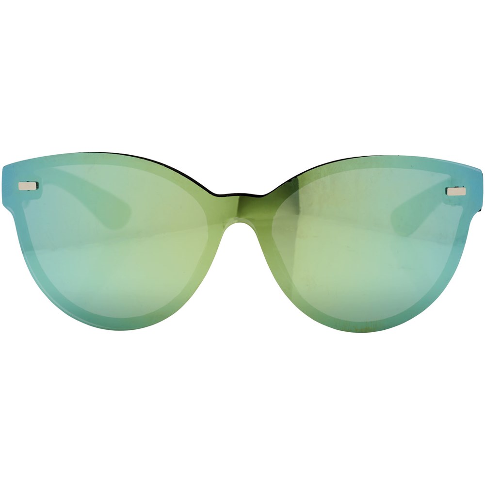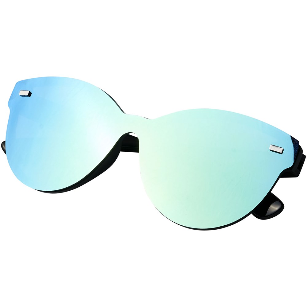 Shield zonnebril met trendy design en spiegelglazen. Voldoet aan EN ISO 12312-1 en UV-400, glazen zijn van klasse 3.