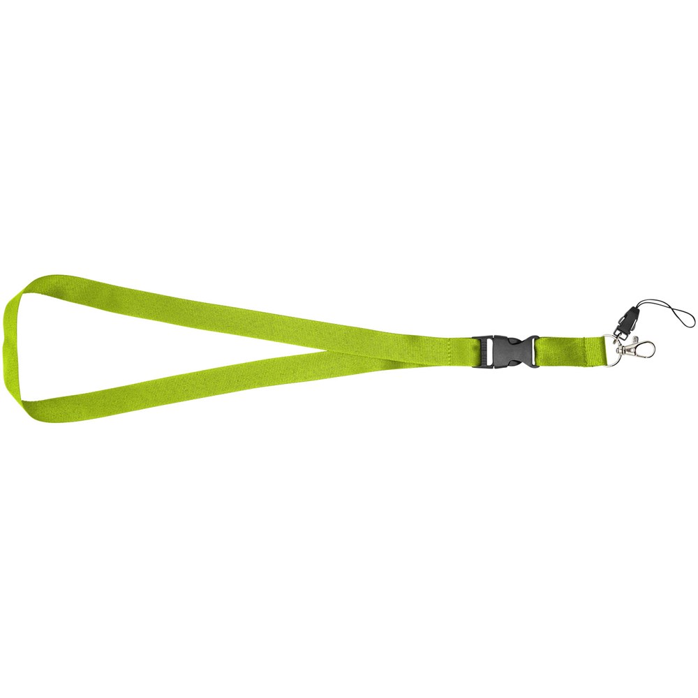 Deze multifunctionele lanyard is voorzien van een afneembare gesp, ovalen haak met musketonsluiting en telefoonhouder. Ideaal voor badge, ID-kaart of sleutels. Verkrijgbaar in een groot aantal kleuren en altijd indrukwekkend veel ruimte voor uw logo. Een compleet assortiment voor alle toepassingen. Geen instelkosten voor tweede locatie bij identiek bedrukkingspatroon aan beide zijden.