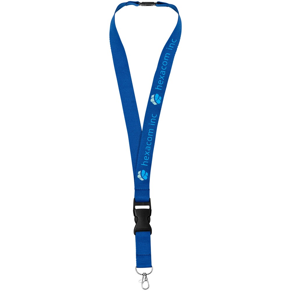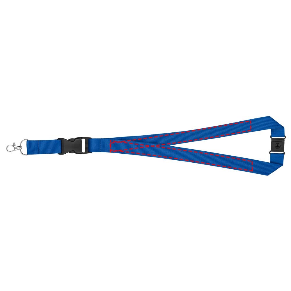 Lanyard voor badge, ID-kaart of sleutels. Met veiligheidssluiting tegen verstikkingsgevaar. Instelkosten voor tweede locatie vervallen als beide zijden op dezelfde manier worden gedecoreerd. Decoratiekosten wel van toepassing.