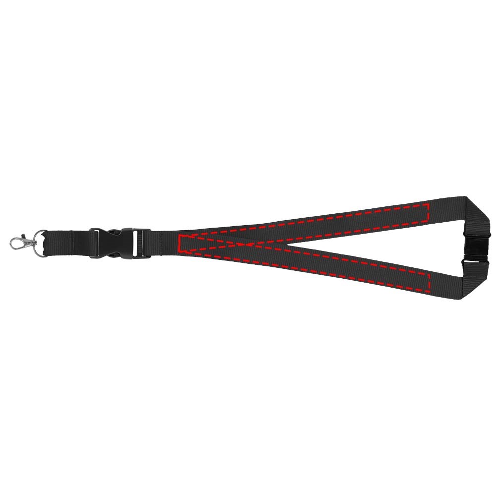 Lanyard voor badge, ID-kaart of sleutels. Met veiligheidssluiting tegen verstikkingsgevaar. Instelkosten voor tweede locatie vervallen als beide zijden op dezelfde manier worden gedecoreerd. Decoratiekosten wel van toepassing.