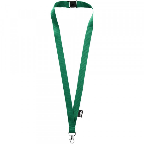 Gerecyclede PET lanyard met veiligheidssluiting. Hoogwaardige ovalen haak met karabijnsluiting die ideaal is voor het vastmaken van een naambadge, ID-kaart of sleutels.