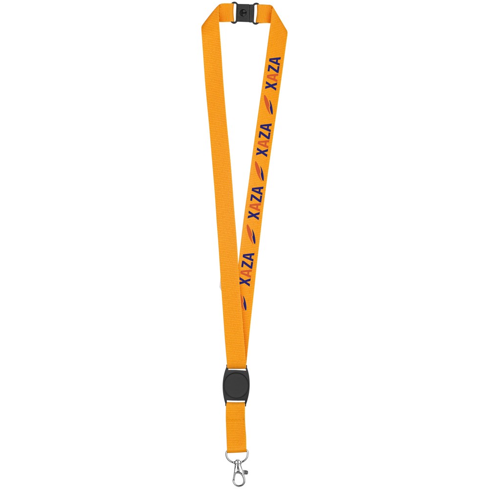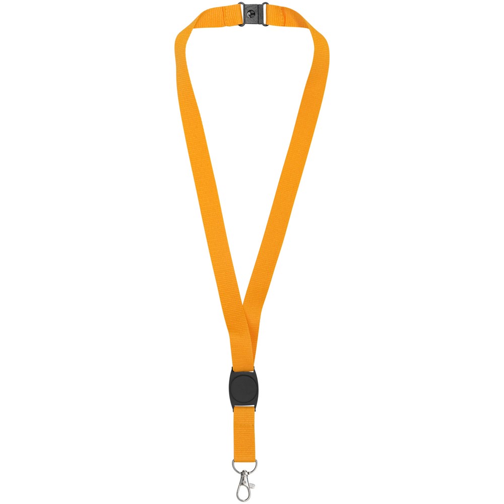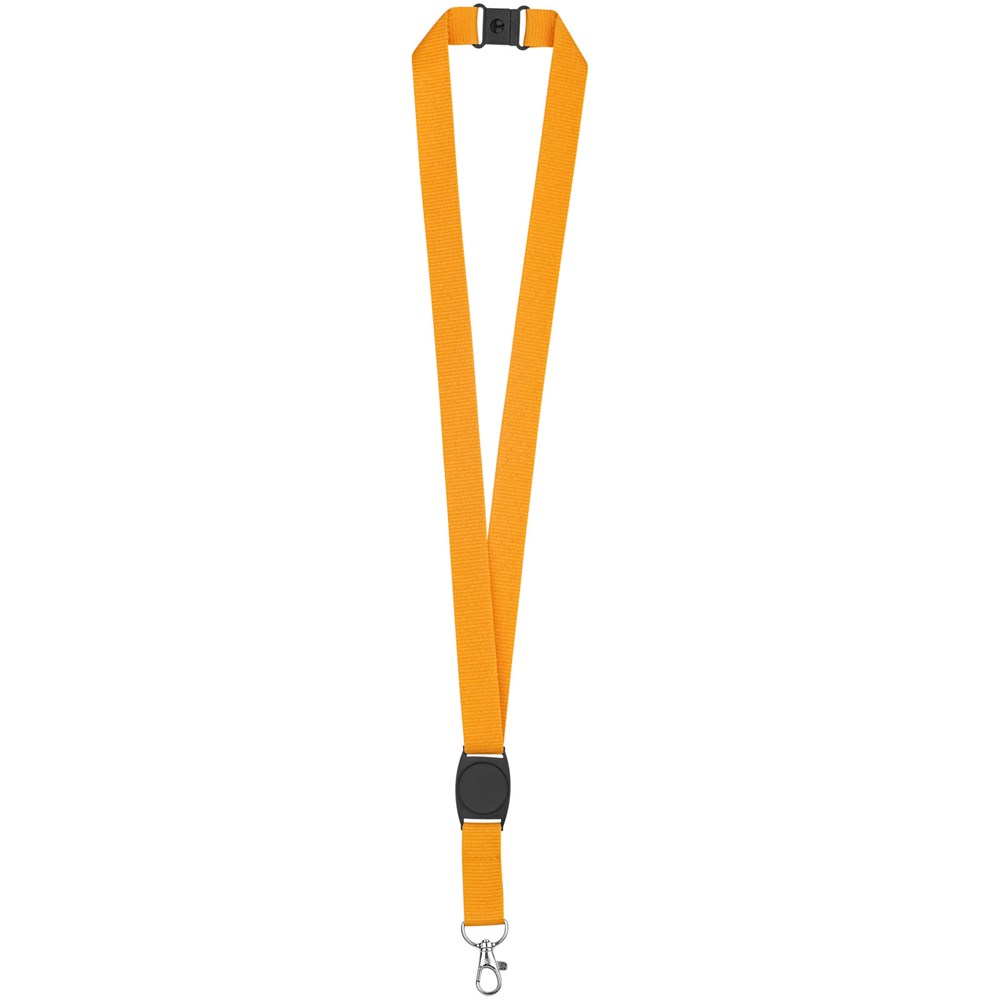 Lanyard voor het bevestigen van een badgehouder, ID-kaart of sleutels. Inclusief kunststof middenstuk voor logo-decoratie. De neksluiting elimineert verstikkingsgevaren.