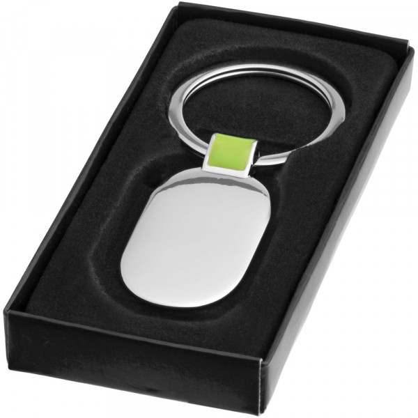 Sleutelhanger met gekleurd accent. Geleverd in een zwarte geschenkverpakking.