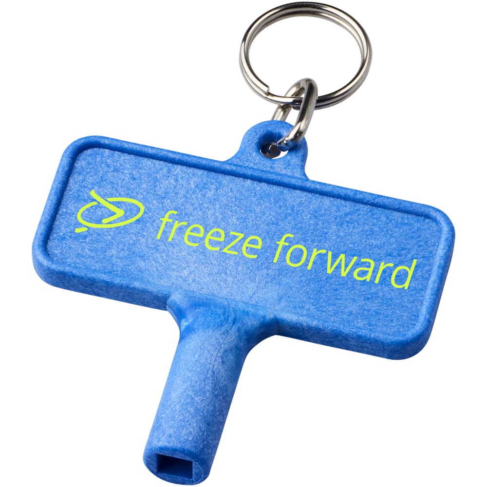 Hulpsleutel met sleutelhanger voor items zoals radiatoren, meterboxen, straatpalen. De afmetingen van de opening is een vierkante vorm met 5 mm randen.