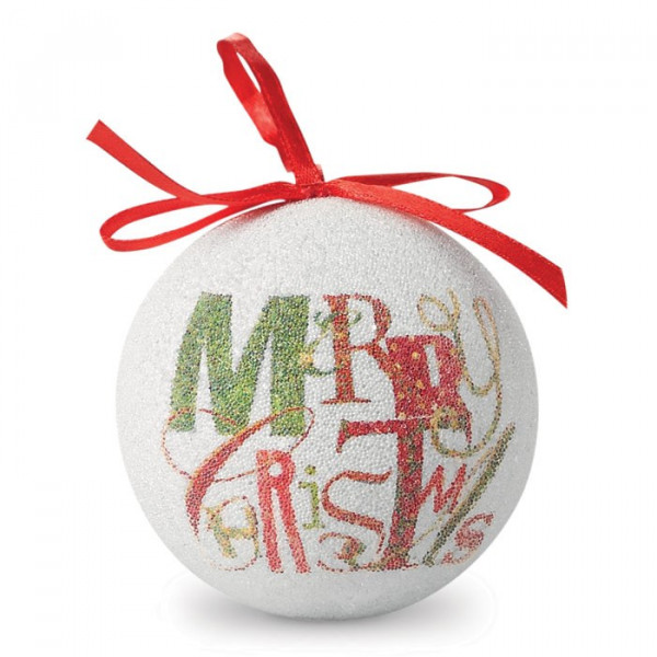 Kerstbal met parelmoeren afwerking. Per stuk verpakt in een doosje met bijpassend ontwerp en ruimte om uw logo erop te bedrukken.