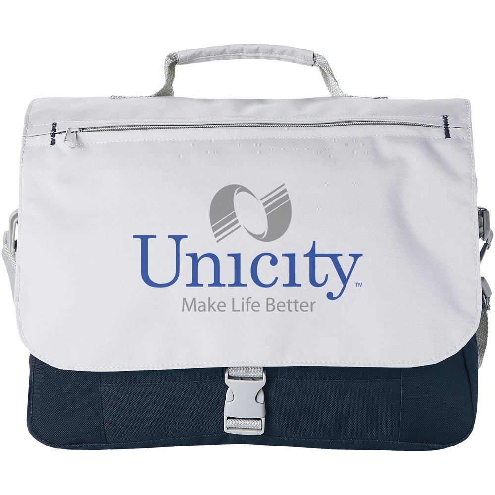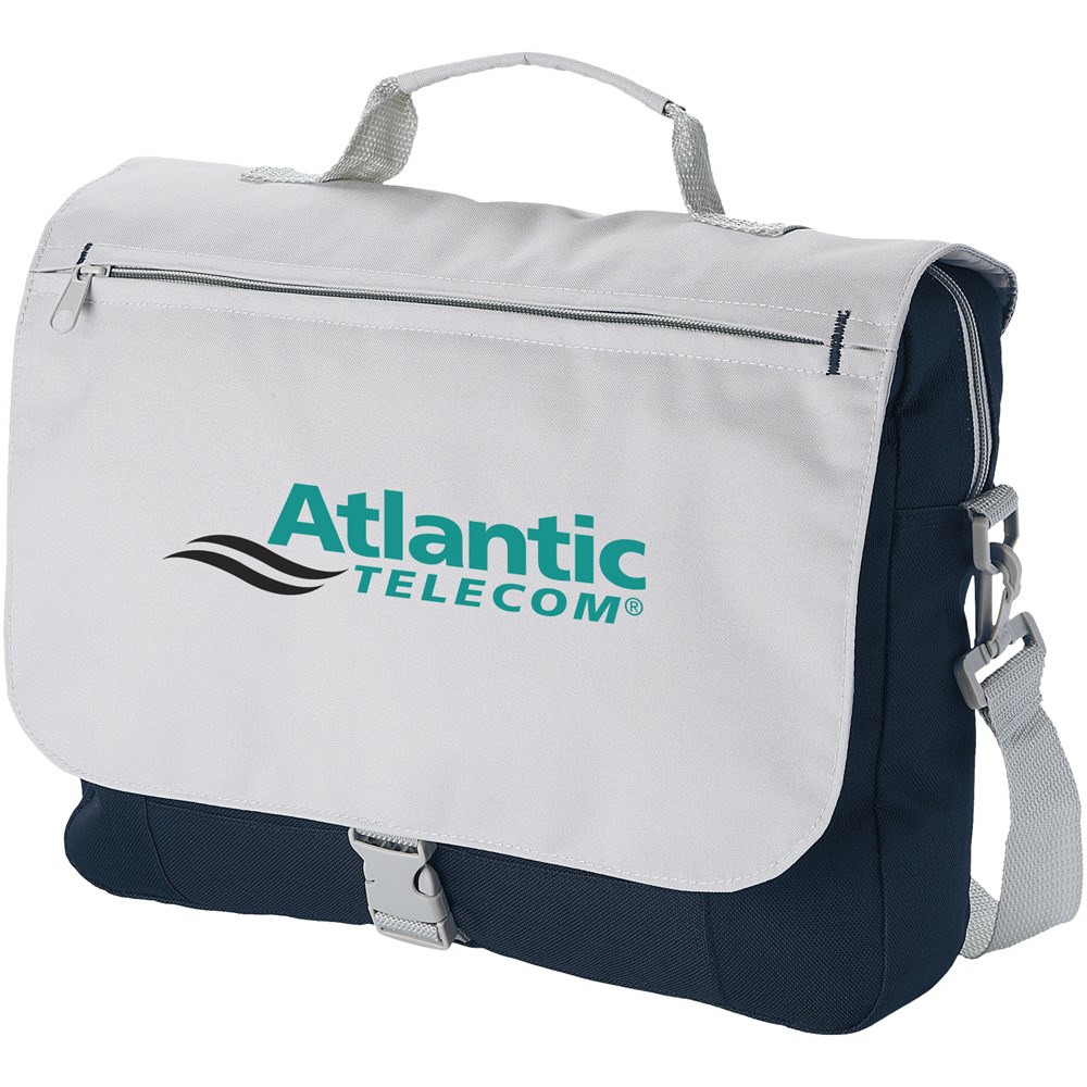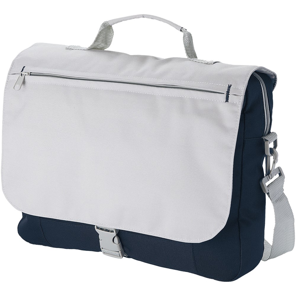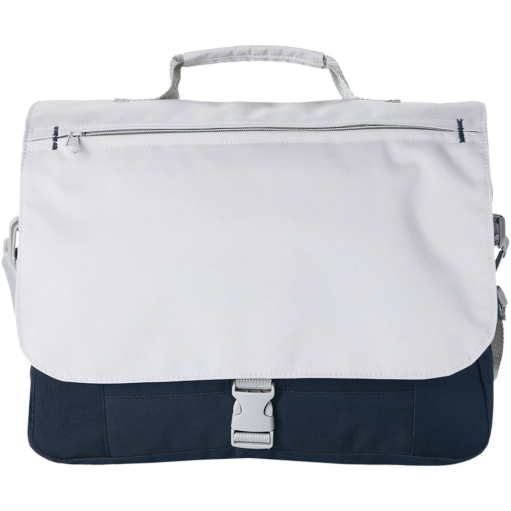 Schoudertas met verstelbare schouderband, gevoerde handgrepen, ritsvak aan de voorkant, centraal compartiment met ritssluiting en organizer-sectie onder de flap.