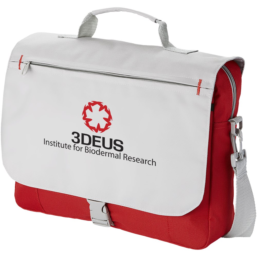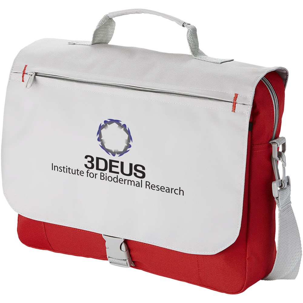 Schoudertas met verstelbare schouderband, gevoerde handgrepen, ritsvak aan de voorkant, centraal compartiment met ritssluiting en organizer-sectie onder de flap.