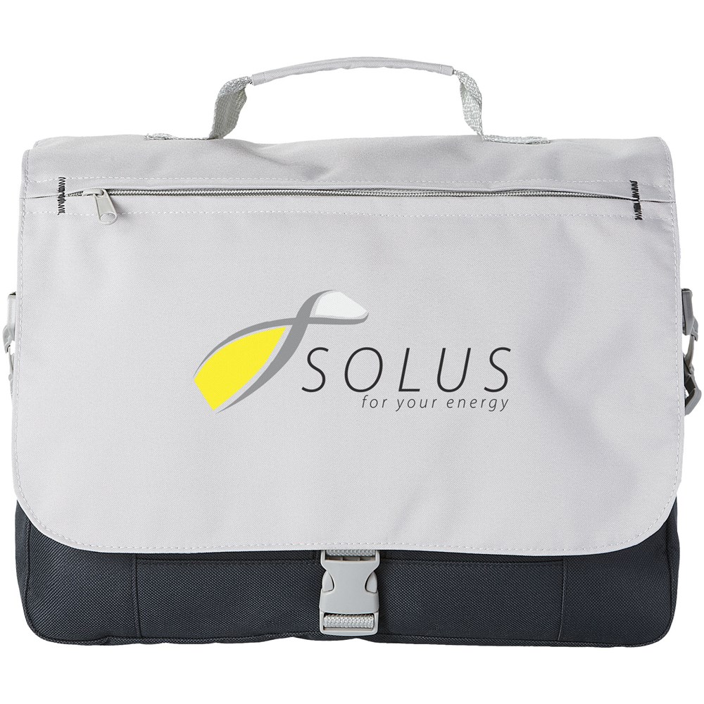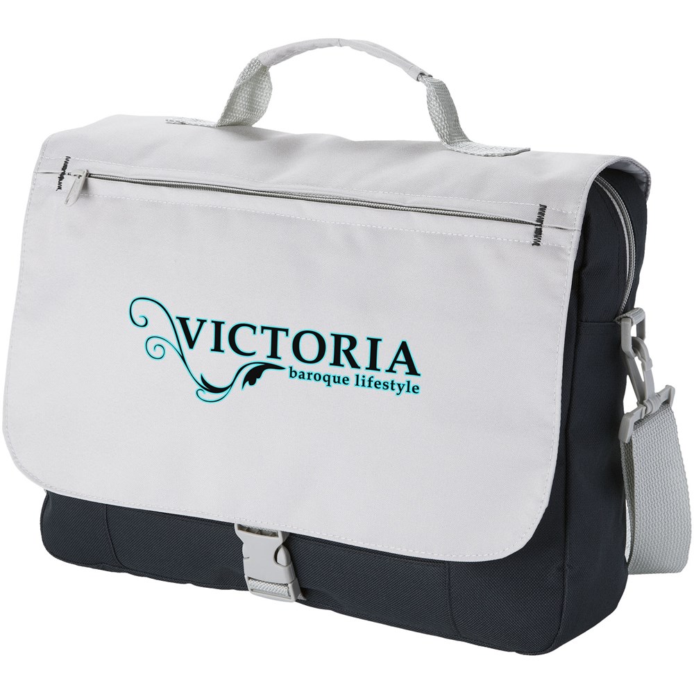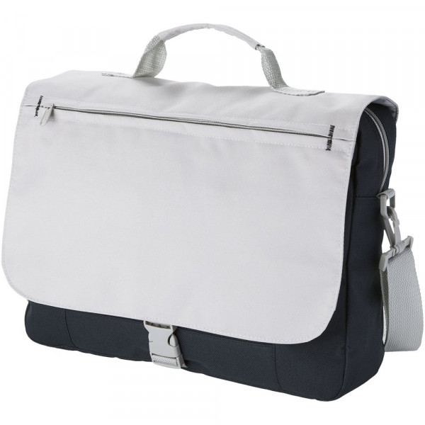 Schoudertas met verstelbare schouderband, gevoerde handgrepen, ritsvak aan de voorkant, centraal compartiment met ritssluiting en organizer-sectie onder de flap.