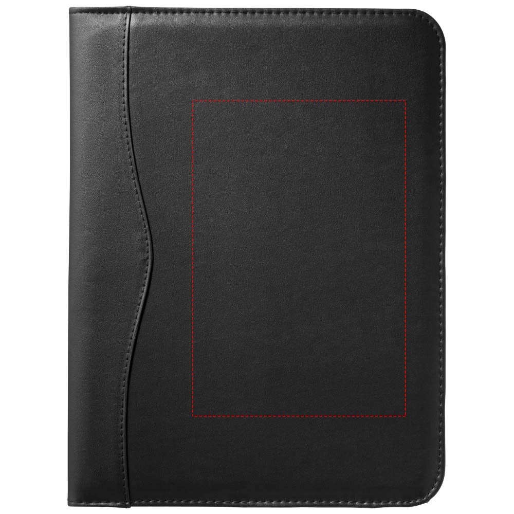 Portfolio A4 formaat met pennenlus, documentvakken en notitieblok met 20 pagina's gelinieerd papier. Pen en accessoires niet inbegrepen.
