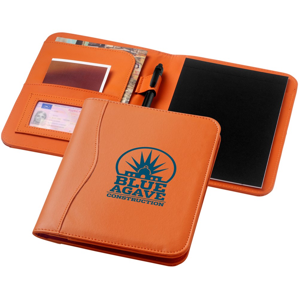 Portfolio A5 formaat met pennenlus, documentvakken en notitieblok met 20 pagina's gelinieerd papier. Pen en accessoires niet inbegrepen.