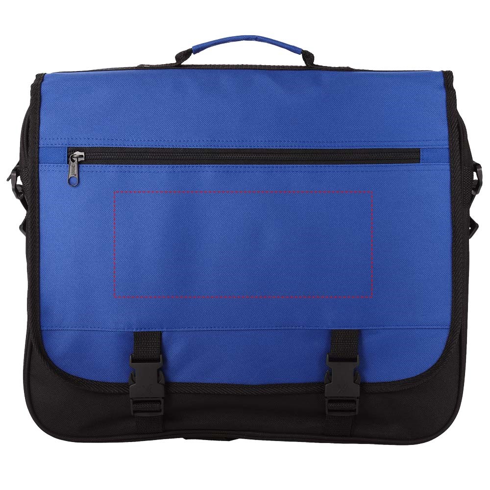 Conferentietas met verstelbare schouderband, gespsluiting, ritsvak in de flap, hoofdvak met ritssluiting en diverse open vakjes onder de flap.