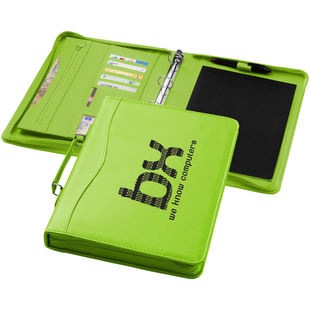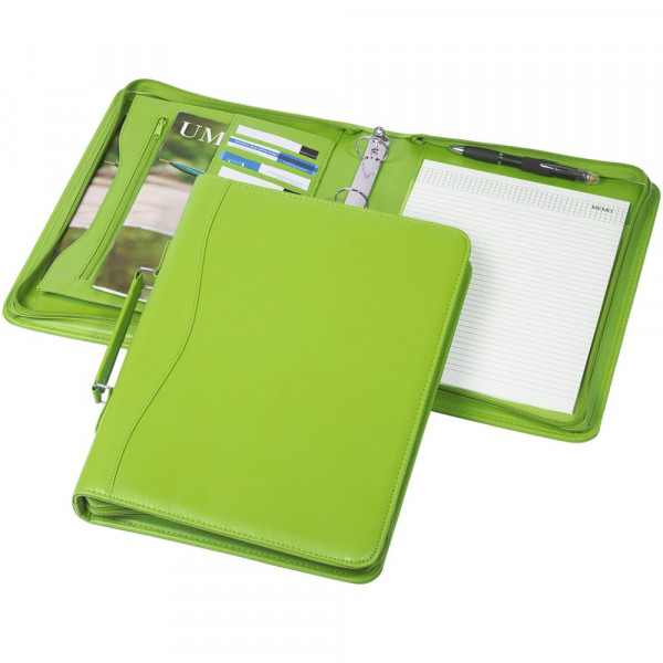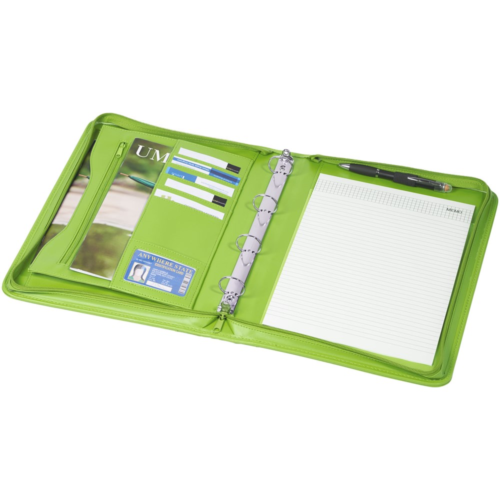 Portfolio A4 formaat met handgreep, ritssluiting, ringband, ritsvak en documentvakken. Met notitieblok met 20 pagina's gelinieerd papier. Pen en accessoires niet inbegrepen.