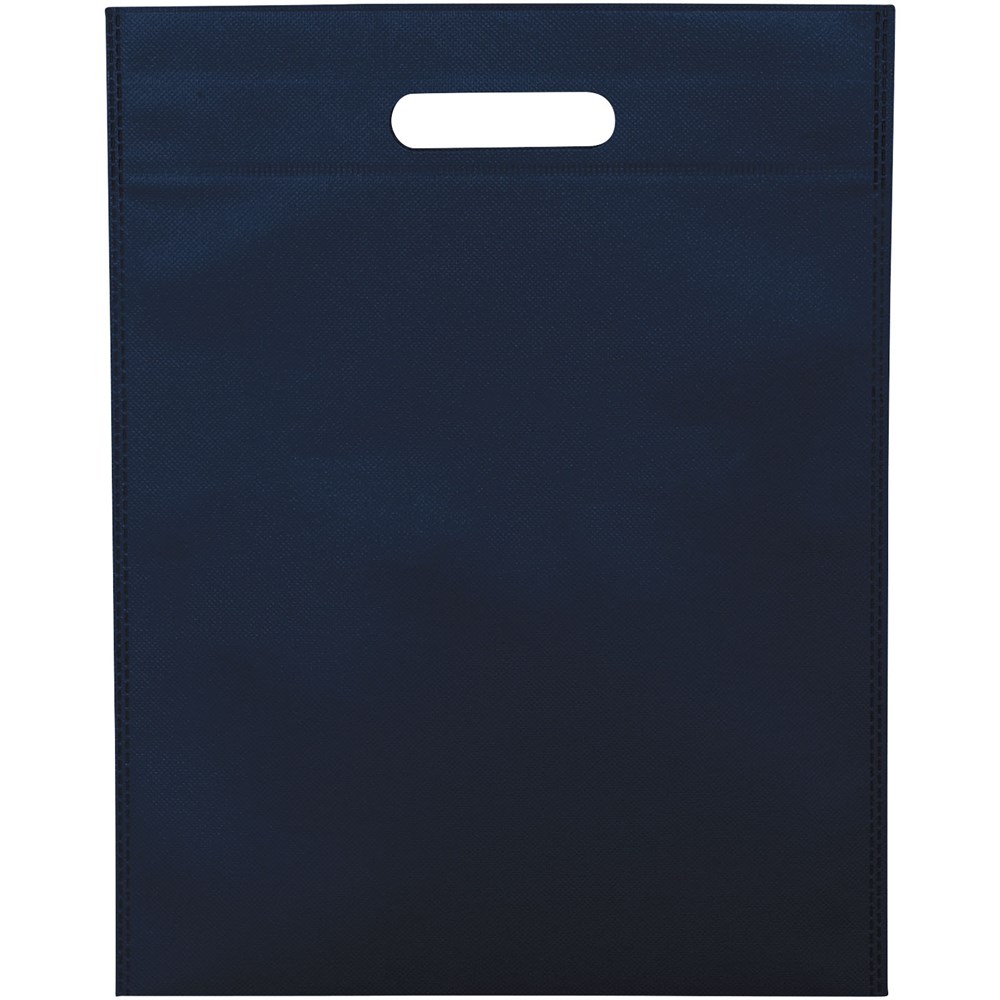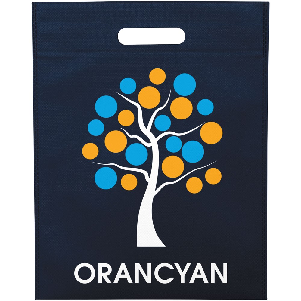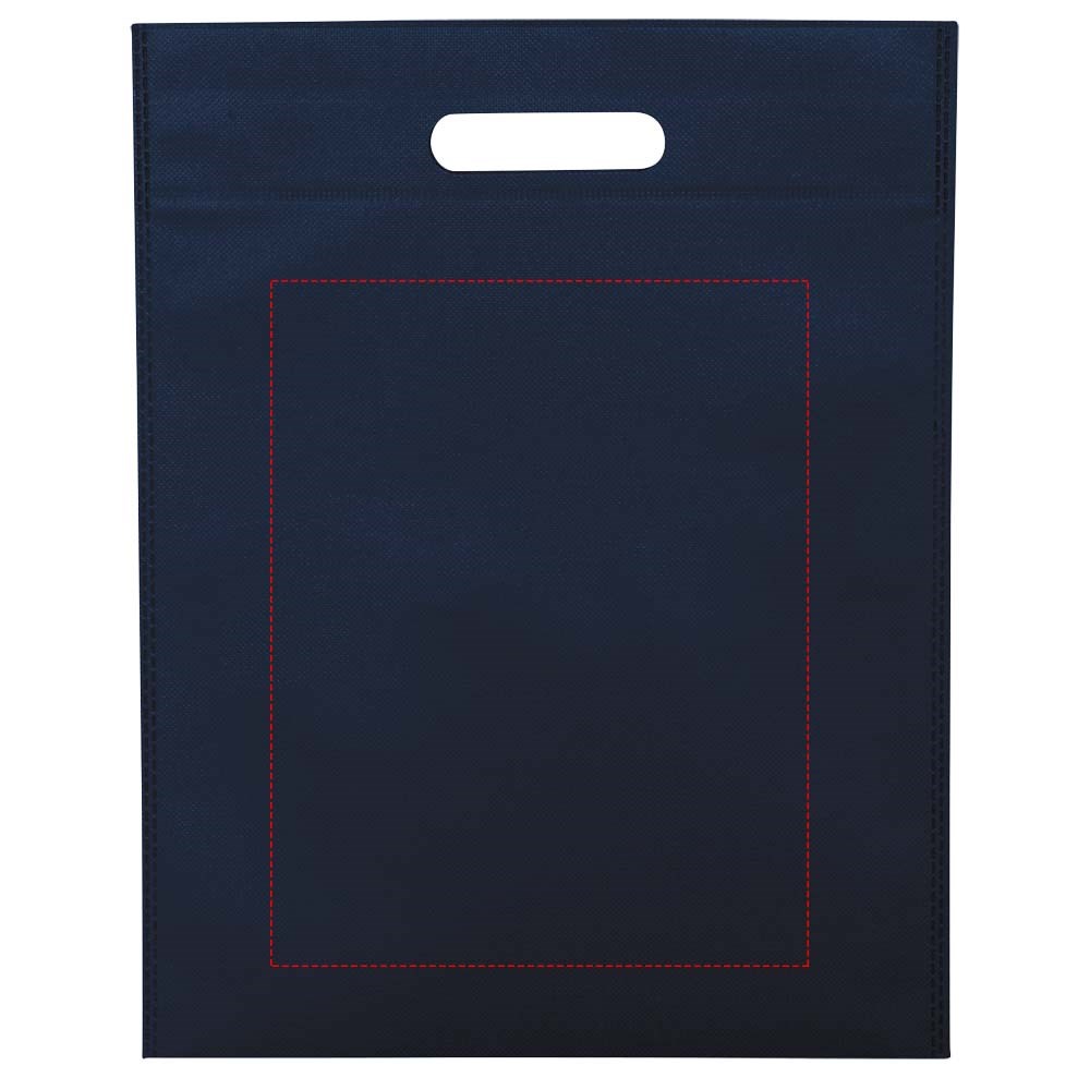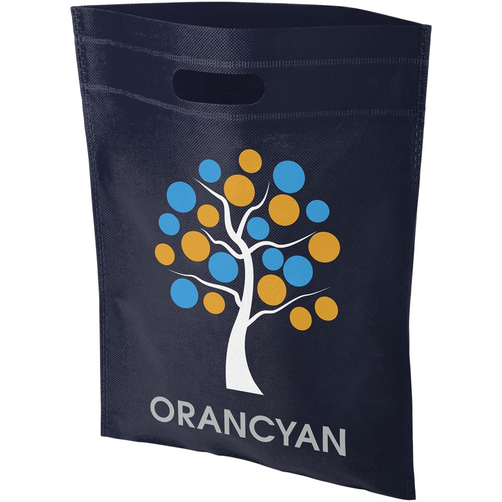 Open hoofdvak met uitgestanst handvat. Dichtgelaste naden. Herbruikbaar en een geweldig alternatief voor plastic tassen op beurzen en promotie-evenementen.