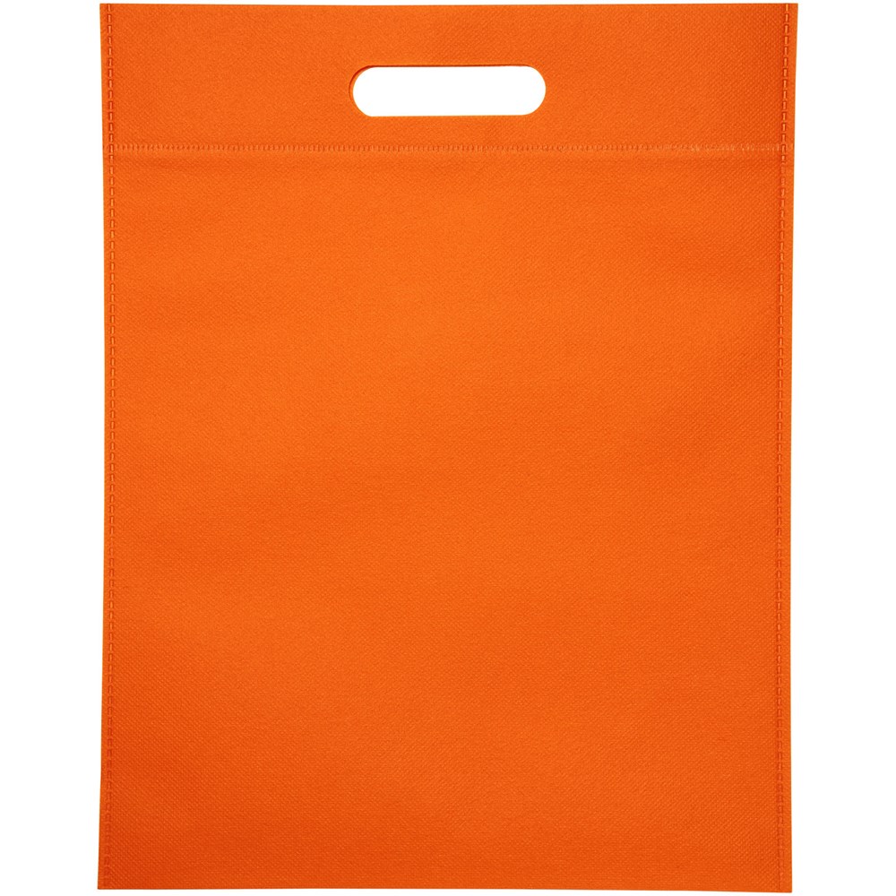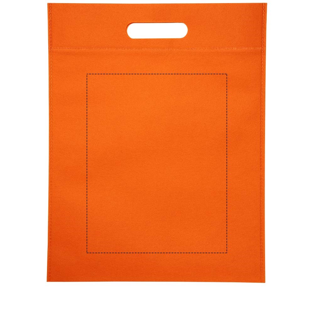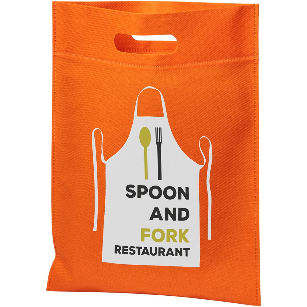 Open hoofdvak met uitgestanst handvat. Dichtgelaste naden. Herbruikbaar en een geweldig alternatief voor plastic tassen op beurzen en promotie-evenementen.