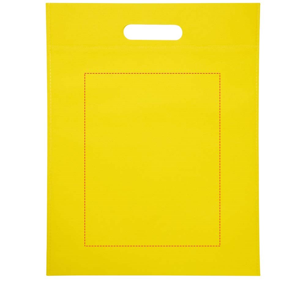 Open hoofdvak met uitgestanst handvat. Dichtgelaste naden. Herbruikbaar en een geweldig alternatief voor plastic tassen op beurzen en promotie-evenementen.