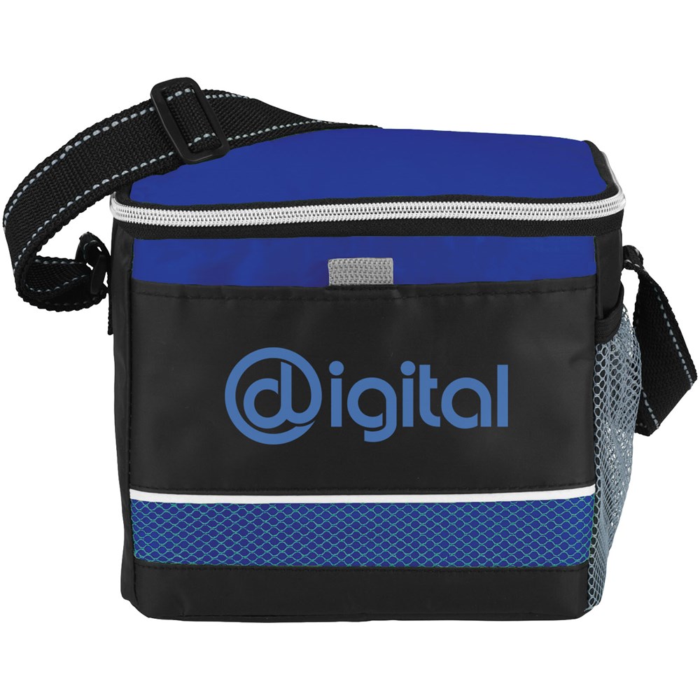 Koeltas met hoofdvak met ritssluiting. Open voorvak. Gaasvak aan de zijkant. Verstelbare schouderband. PEVA-isolatie.