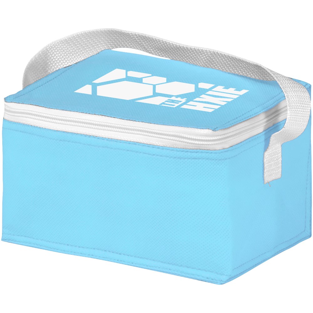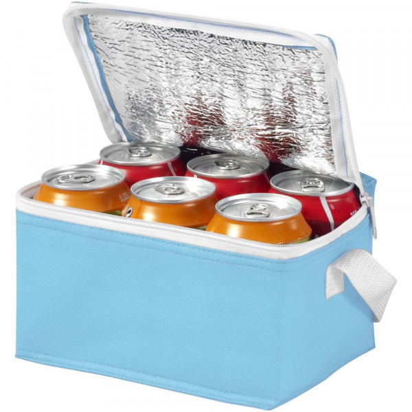 Deze compacte koeltas geeft ruimte voor 6 blikjes.