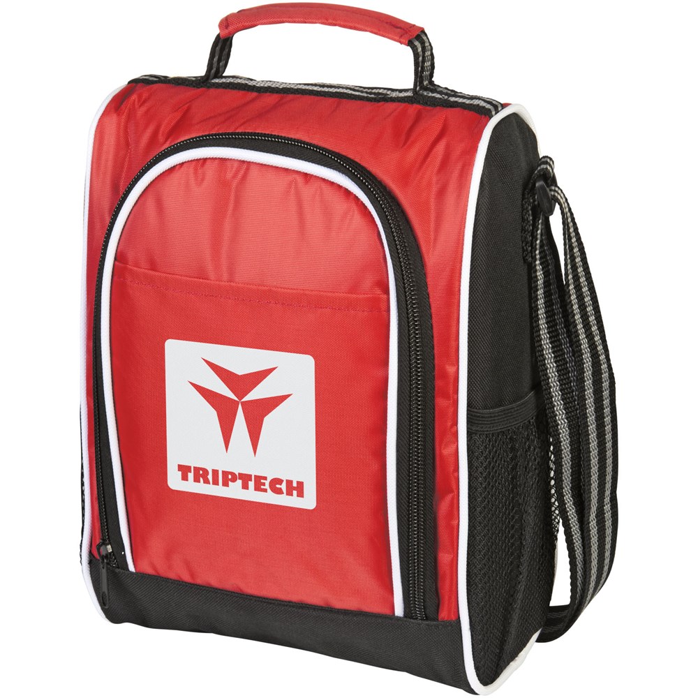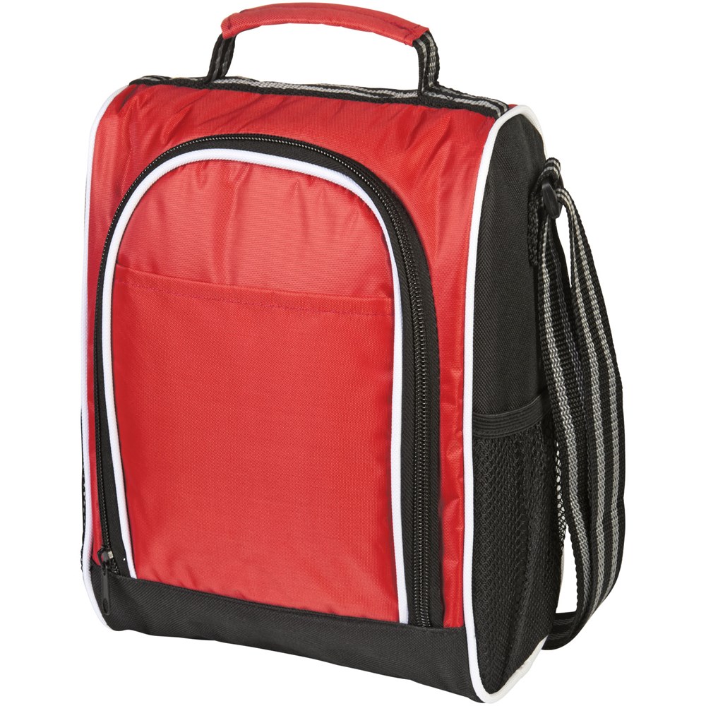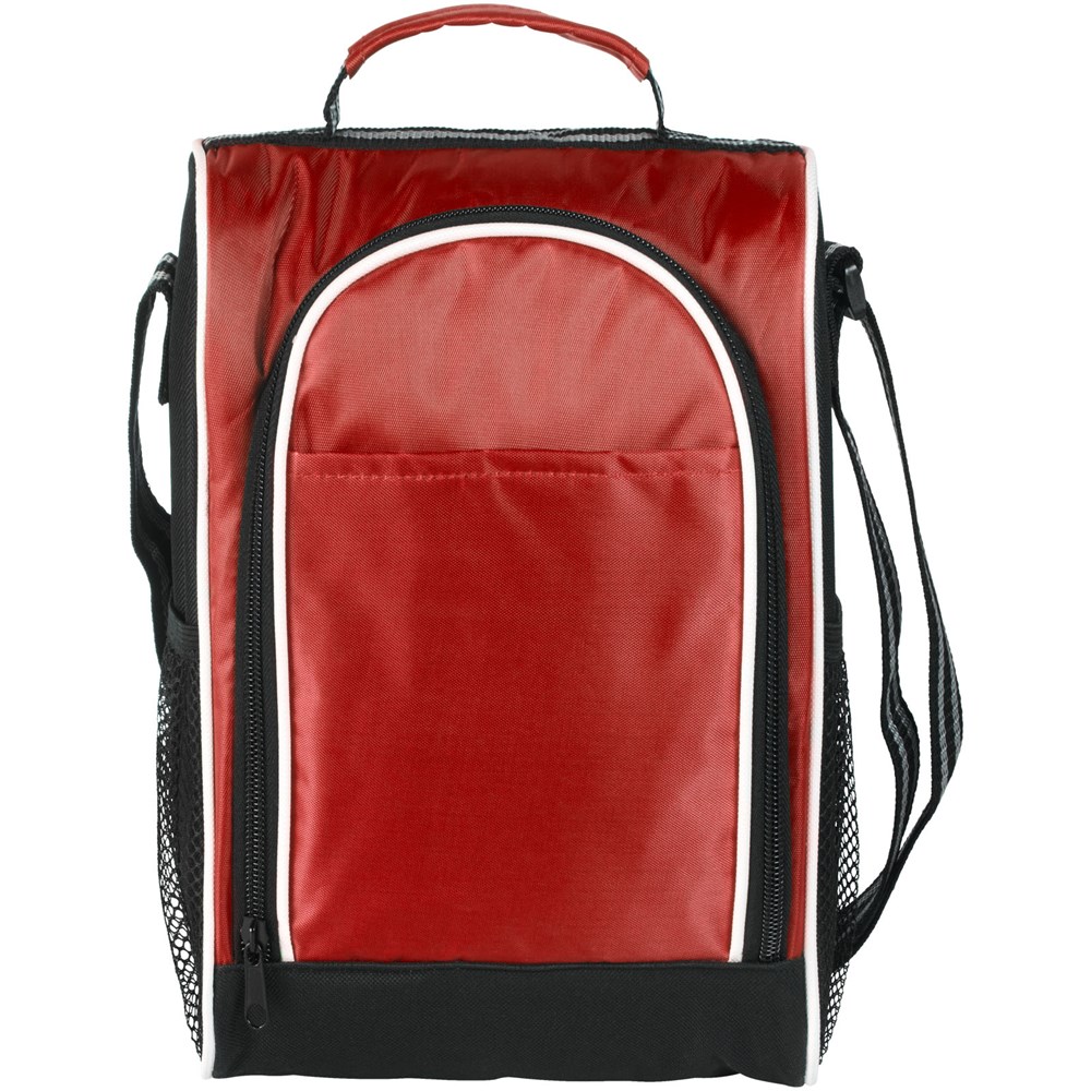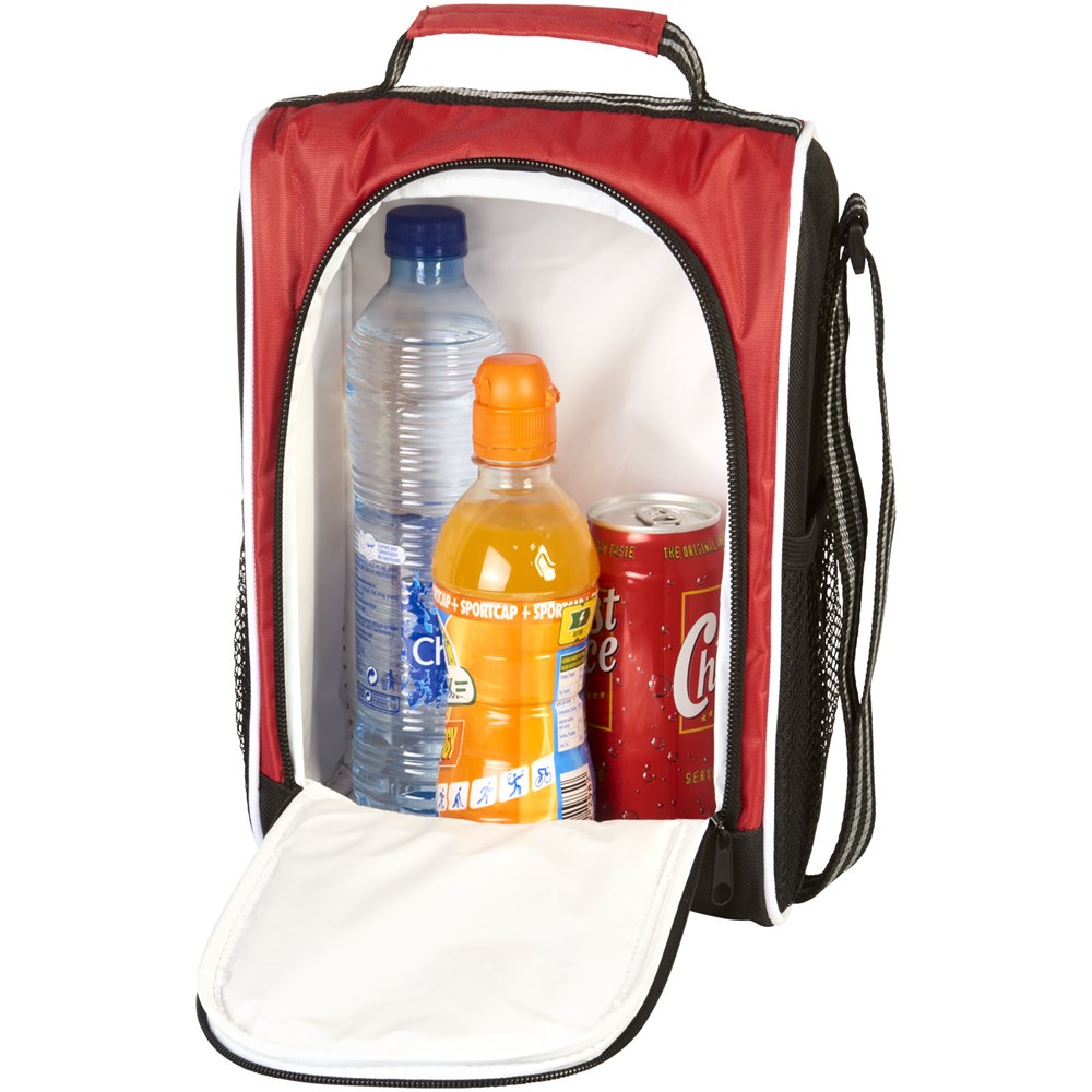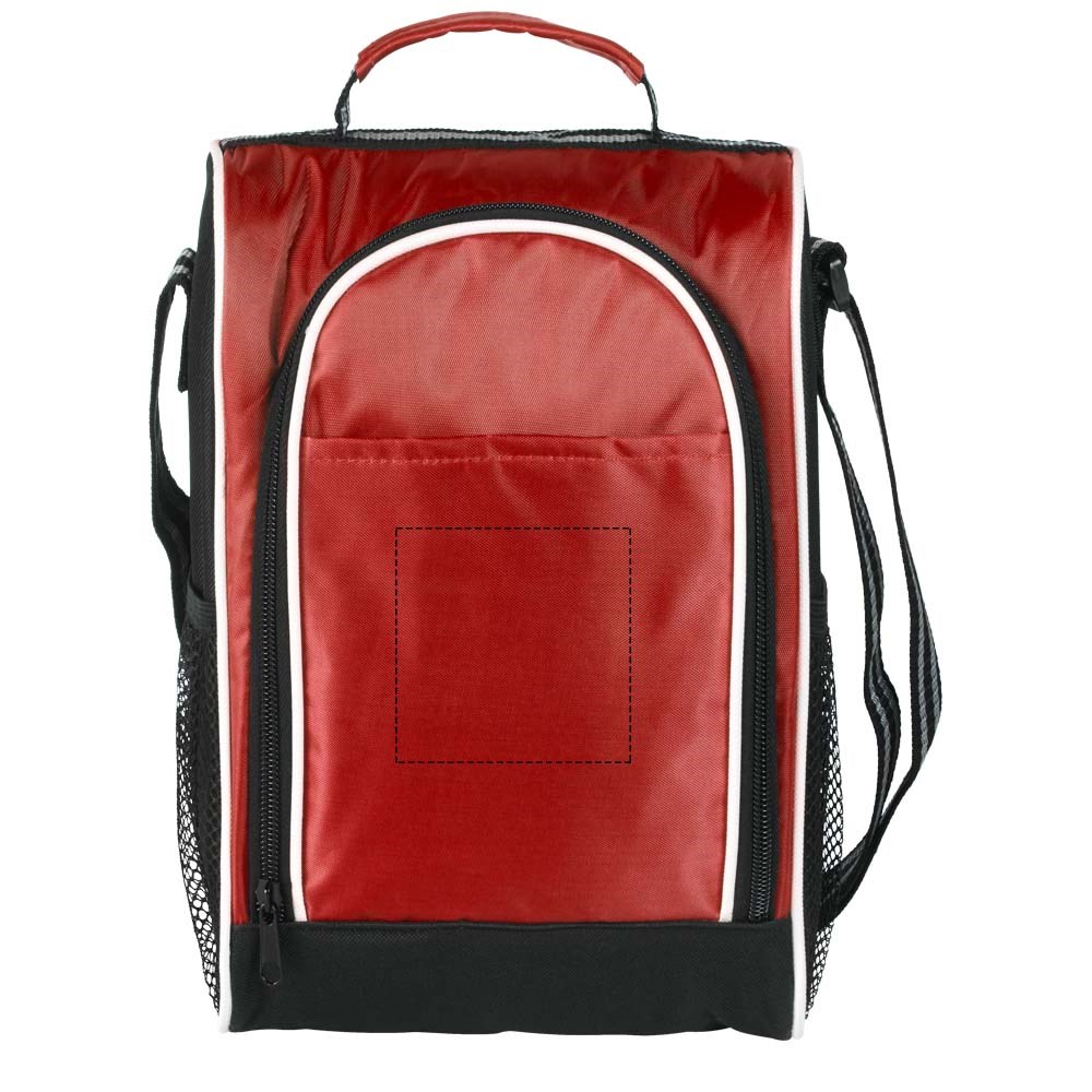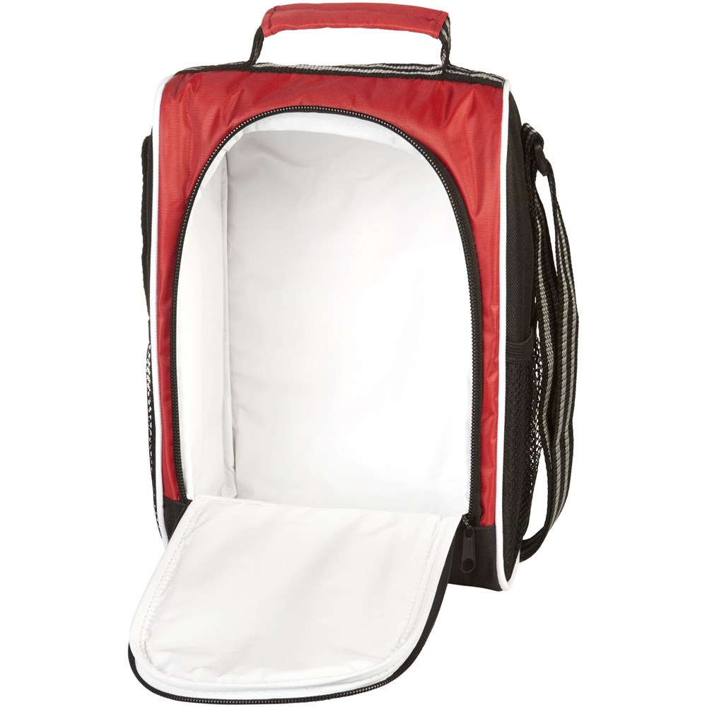 Een praktische en duurzame lunchtas met een geïsoleerd hoofdcompartiment met rits en mesh-vakken aan de zijkanten. Korte handgreep en een verstelbare schouderriem.