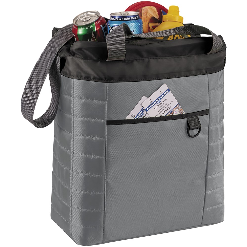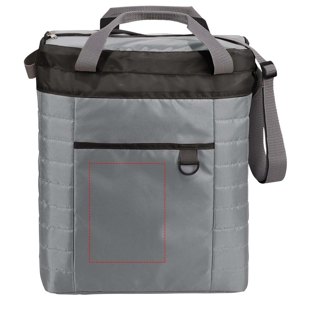 Verstelbare schouderriem en handvaten met een hoogte van 14cm. Gavoerde body. Geisoleerd compartiment met ritssluiting. Voorvak. Plastic lus voor je sleutels.