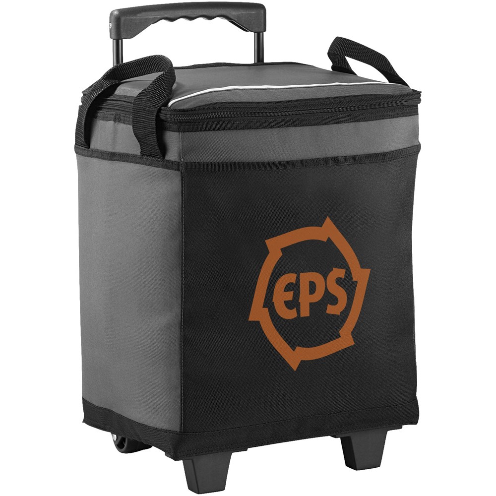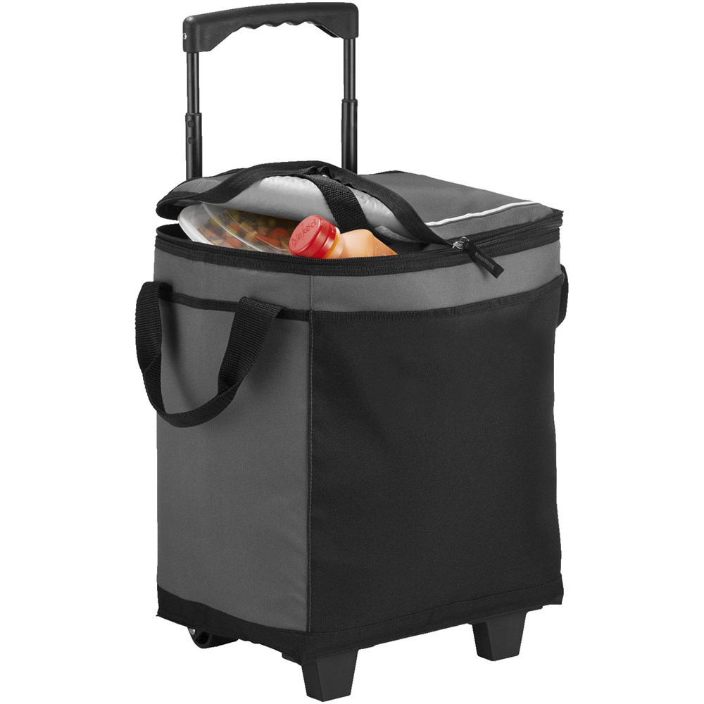 Ideaal voor evenementen in de buitenlucht. Ritsvak voor 32 blikjes. Open voorvak. Intrekbare telescoopgreep, uit te schuiven tot 38 cm. Dubbele draaggreep. Ultra Safe™ lekvrije PEVA voering. Opvouwbaar en dus makkelijk op te bergen.