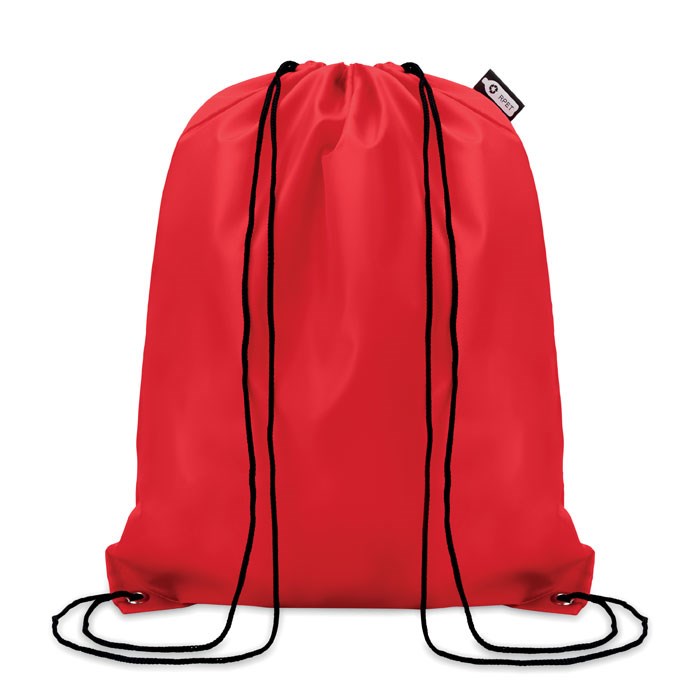 Rugzak met PP koord van 190 RPET. Eco-vriendelijk materiaal gemaakt van gerecyclede kunststof flessen. Sublimatie bedrukking alleen geschikt op het witte item.