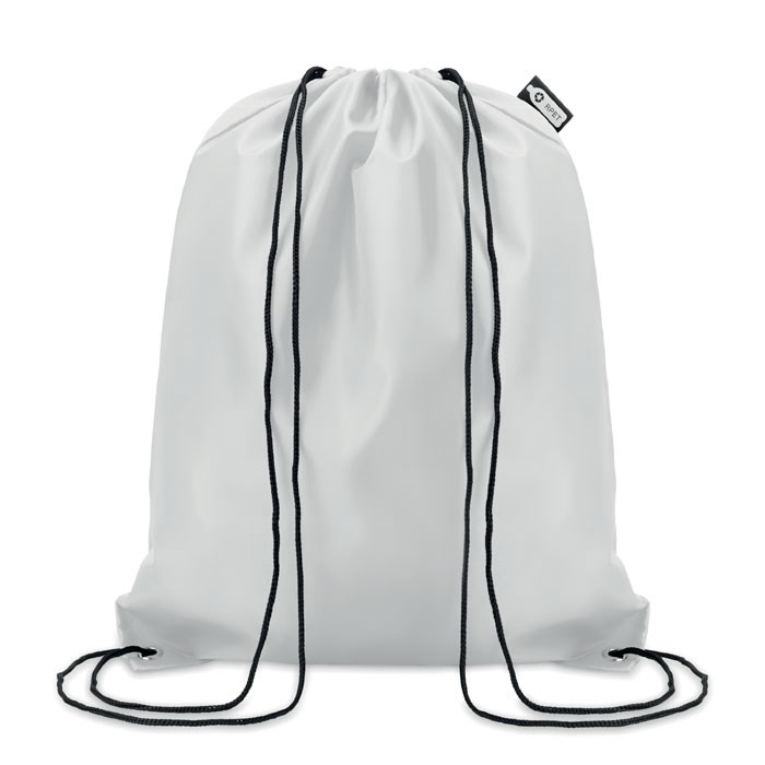 Rugzak met PP koord van 190 RPET. Eco-vriendelijk materiaal gemaakt van gerecyclede kunststof flessen. Sublimatie bedrukking alleen geschikt op het witte item.
