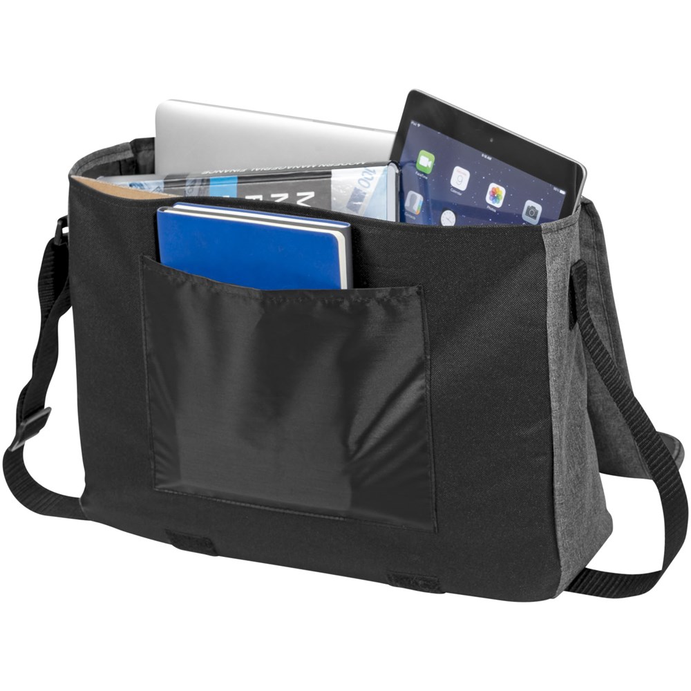 15,6" laptop tas met een gevoerd hoofdvak en organizerpaneel. Verticale rits aan de voorzijde, voorziet eenvoudige toegang tot je telefoon en dagelijks nodige items. Verstelbare schouderband.