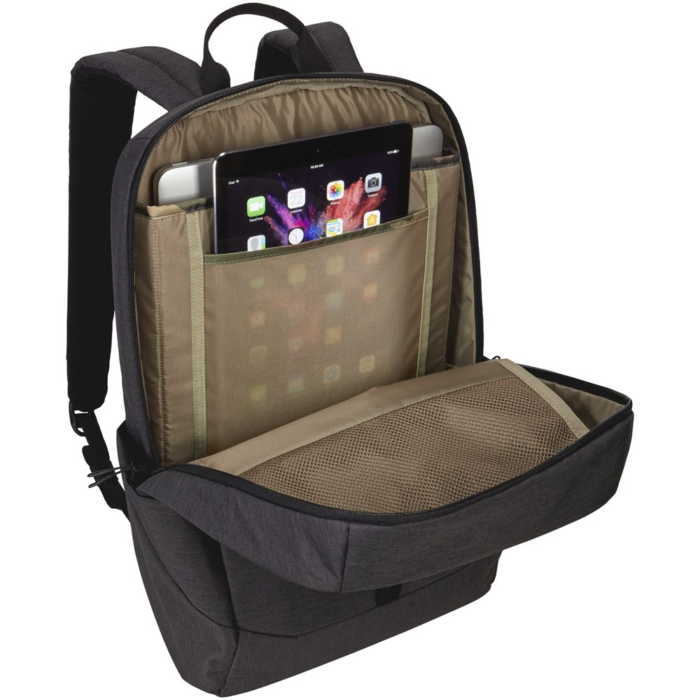 Laptop rugzak met een groot hoofdvak met rits en een gewatteerde 15" laptop- en 10,1" tablethoes. Beschikt over een overzichtelijk organisatievak om een telefoon, pennen, sleutels of andere kleine items te bewaren. Bevat een mesh vak aan de binnenkant met rits, zijvakken, gewatteerd(e) achterpaneel en schouderbanden.