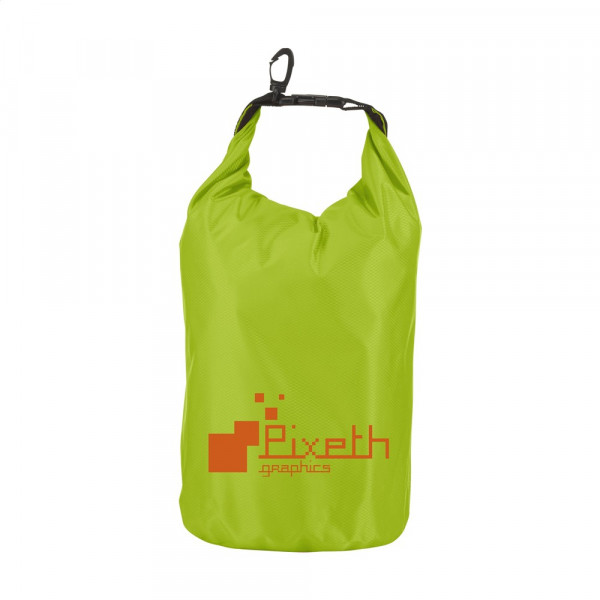 Stevige tas van 210T ribstop polyester/PVC, voor het droog houden van persoonlijke items. De tas blijft drijven op het water en is bestand tegen waterstralen en spatten, maar mag niet ondergedompeld worden. Met rolsluiting aan de bovenzijde, kliksysteem en handige karabijnhaak voor het makkelijk aanhaken aan overige bagage of riemen. Inhoud 5 liter.