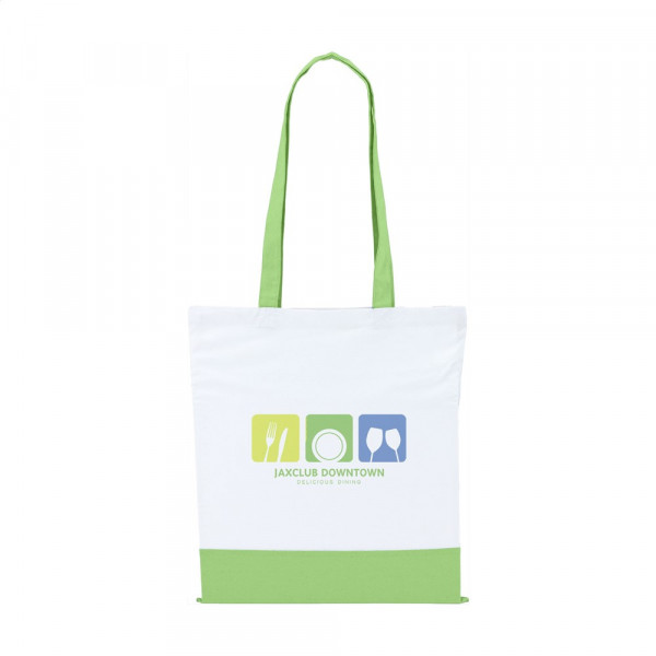 Witte winkeltas met kleuraccent. Van 100% soepel katoen (125 g/m²). Met lange hengsels.